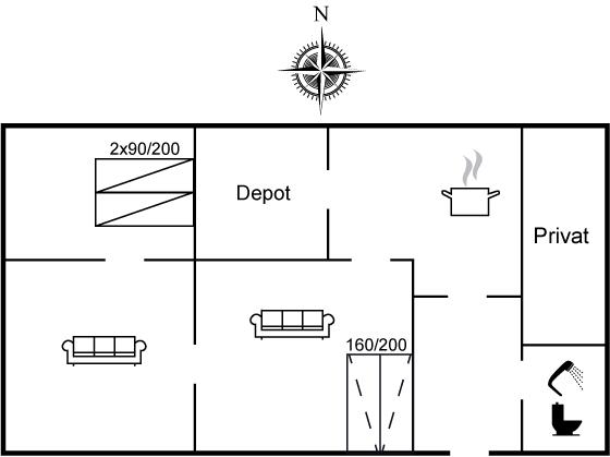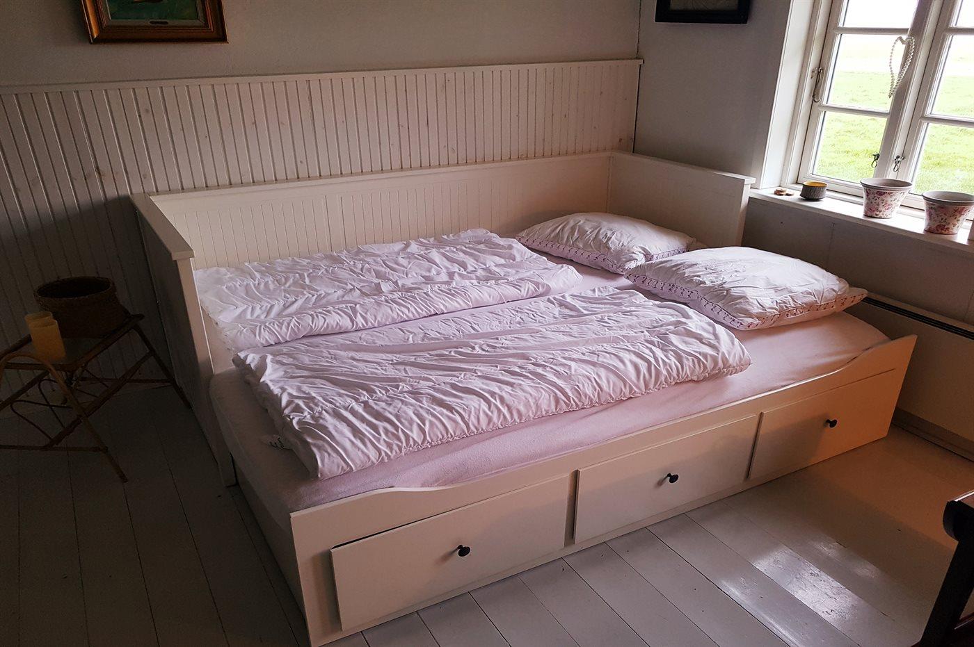 Der er i alt 1 soveværelse. Sovepladserne fordeler sig på: 2 sovepladser i dobbeltseng. 2 sovepladser i sovesofa (dobbelt).