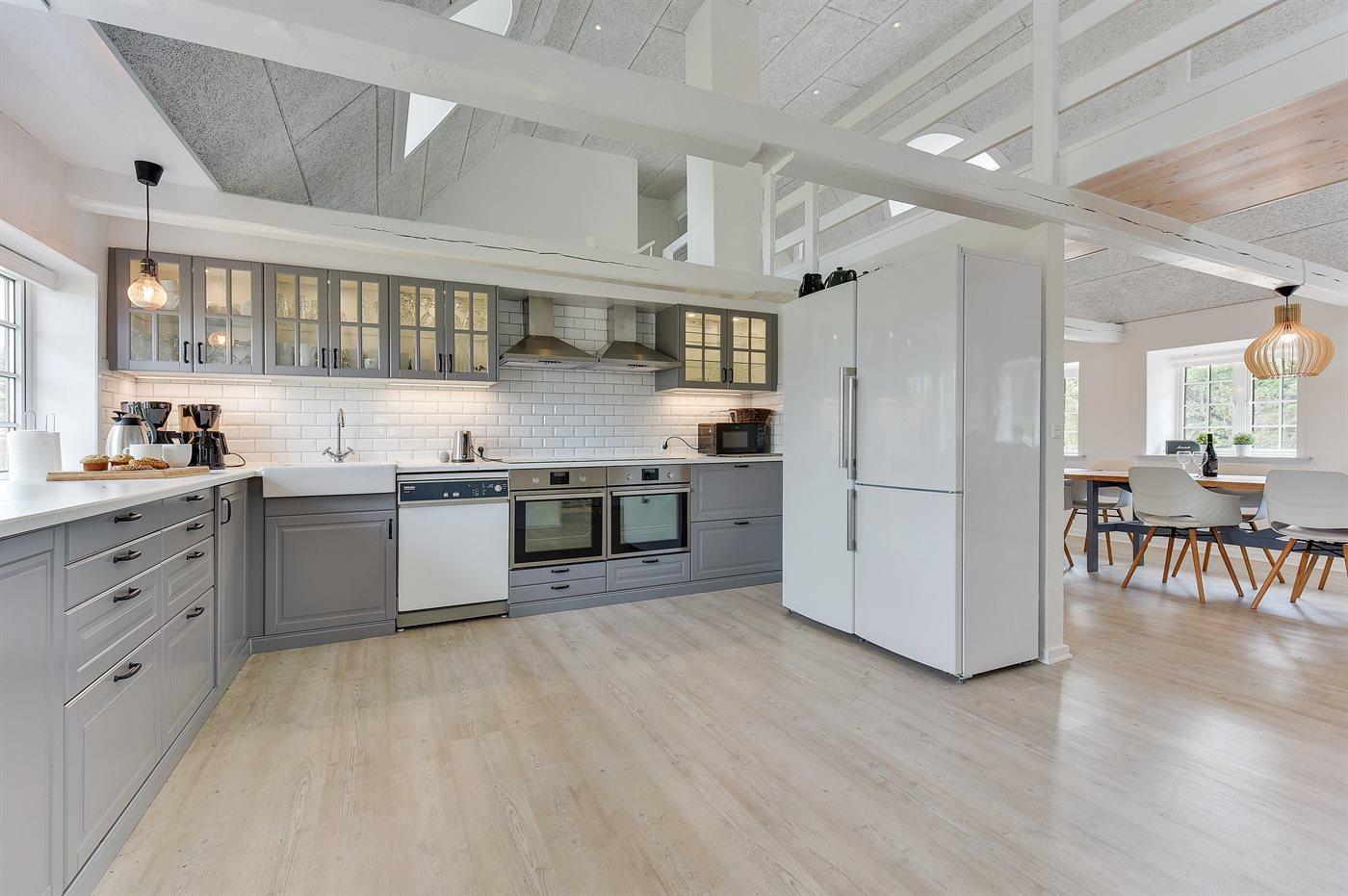 Køkkenet er udstyret med 2 køleskabe. Der er 4 keramiske kogeplader, varmluftovn, mikrobølgeovn samt opvaskemaskine Der er gulvvarme i køkkenet.
