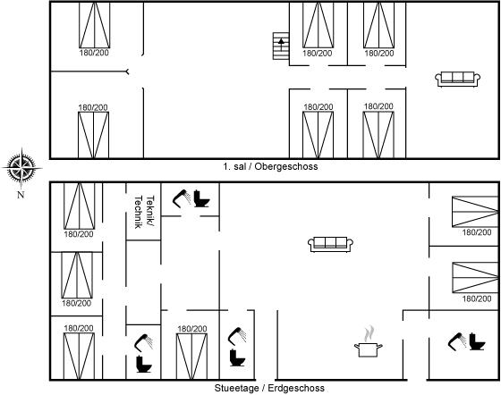 Der er i alt 12 soveværelser. Sovepladserne fordeler sig på: 24 sovepladser i dobbeltsenge.