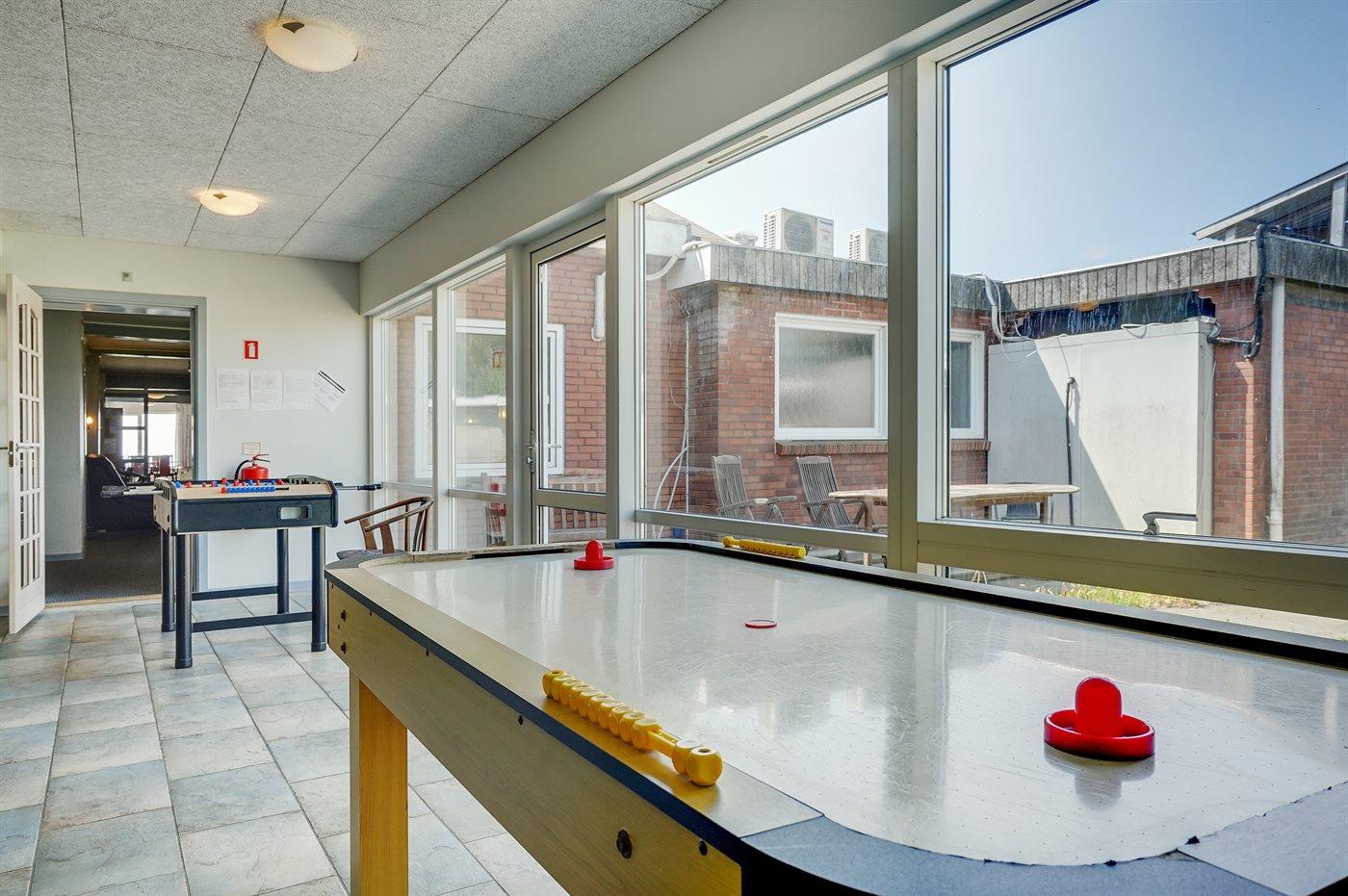 I aktivitetsrummet er der følgende udstyr: Billard. Bordtennis. Airhockey. Bordfodbold.