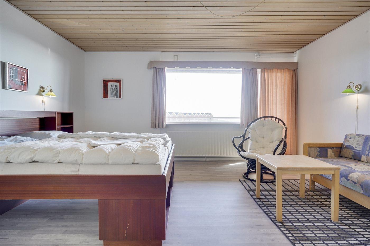 Der er i alt 16 soveværelser. Sovepladserne fordeler sig på: 22 sovepladser i dobbeltsenge. 10 sovepladser i enkeltsenge. Derudover er der 3 stk. barnesenge.