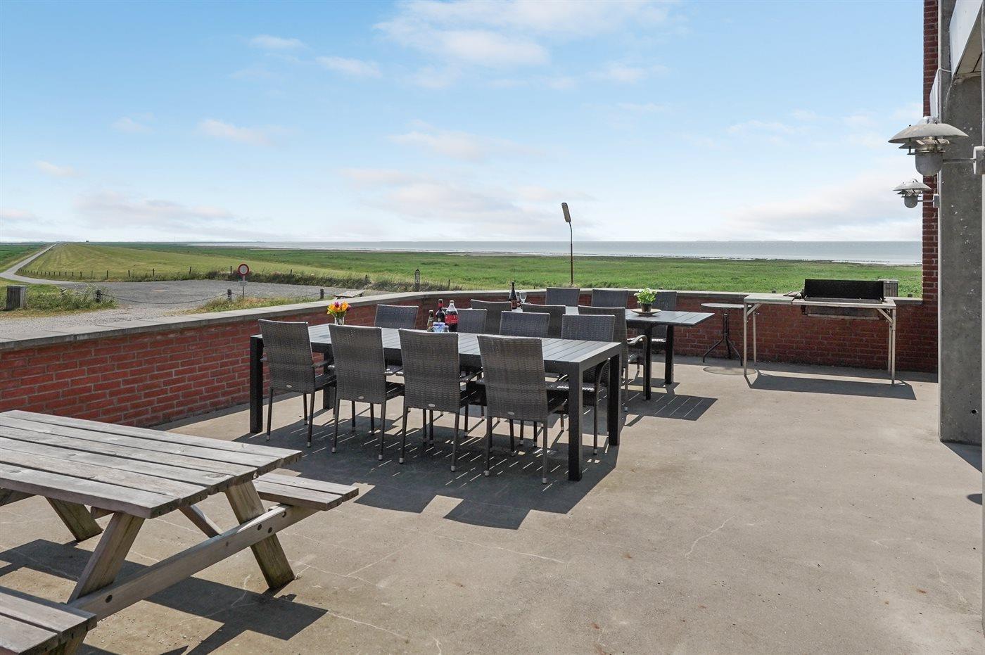 Stor feriebolig ved Vadehavet med plads til 32 personer, indendørs pool, sauna og fantastisk udsigt.