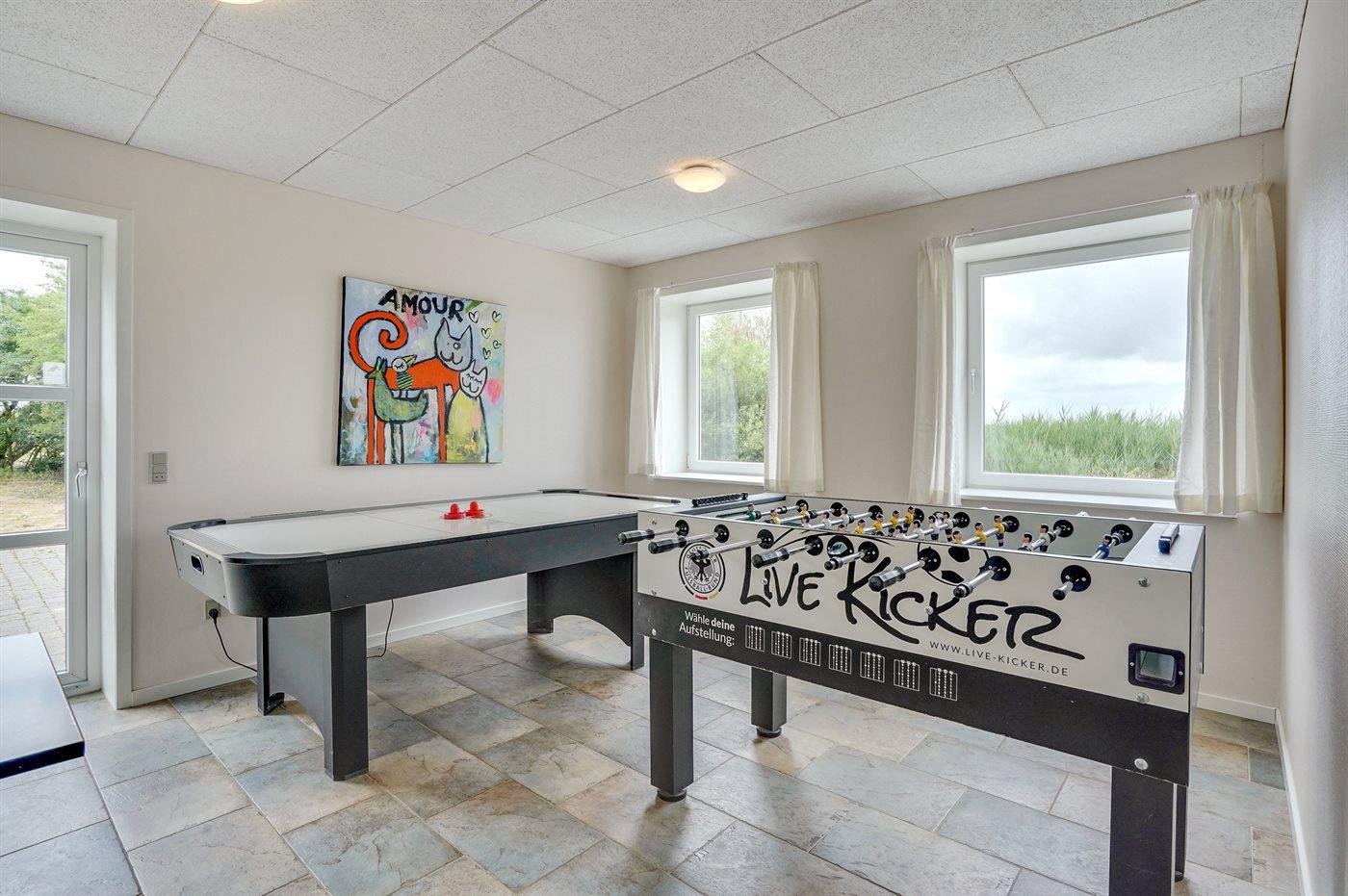Rummeligt sommerhus ved Højer med pool, spa, sauna og aktivitetsrum på stor naturgrund.