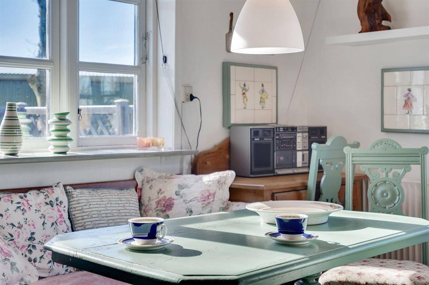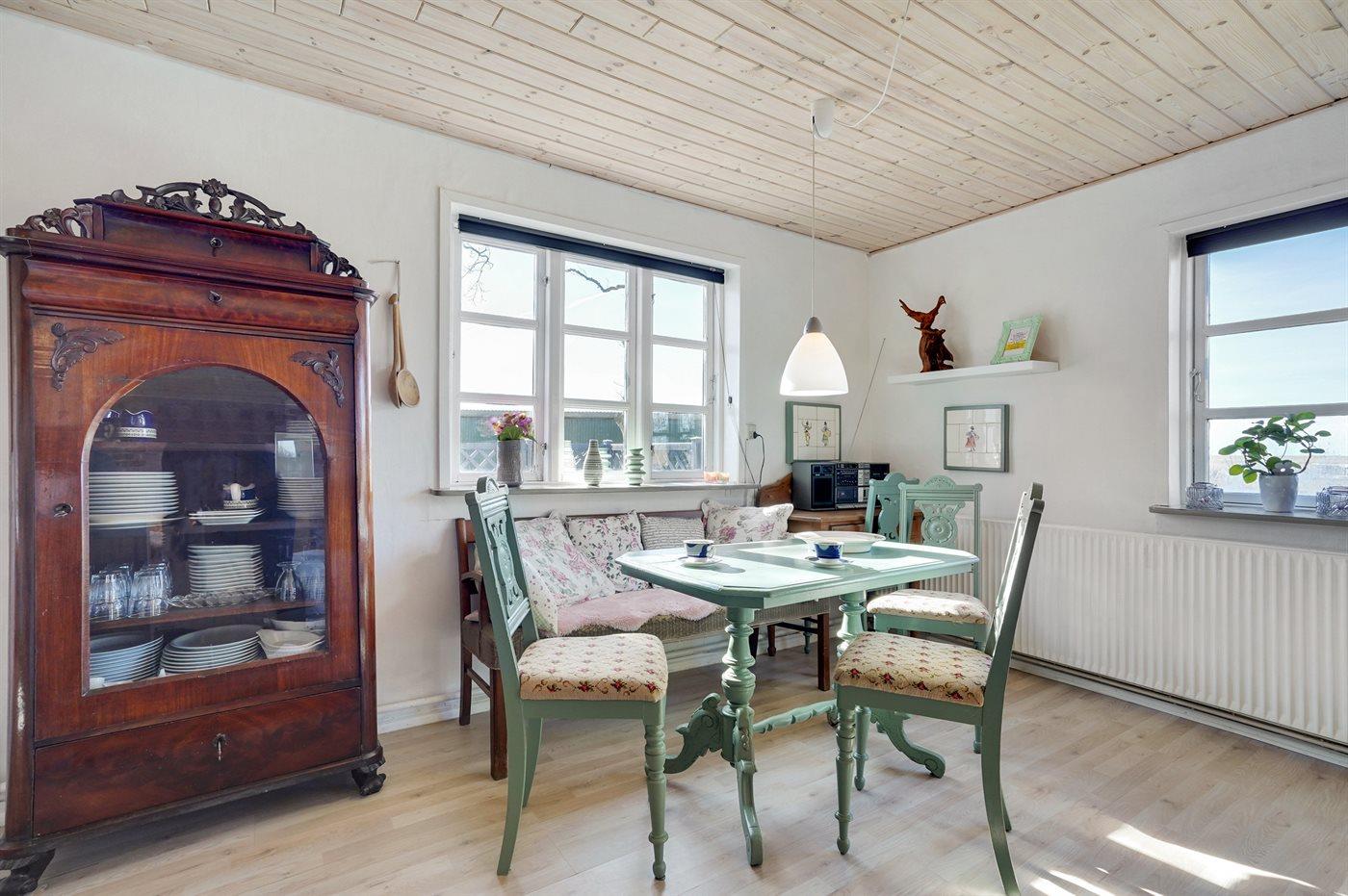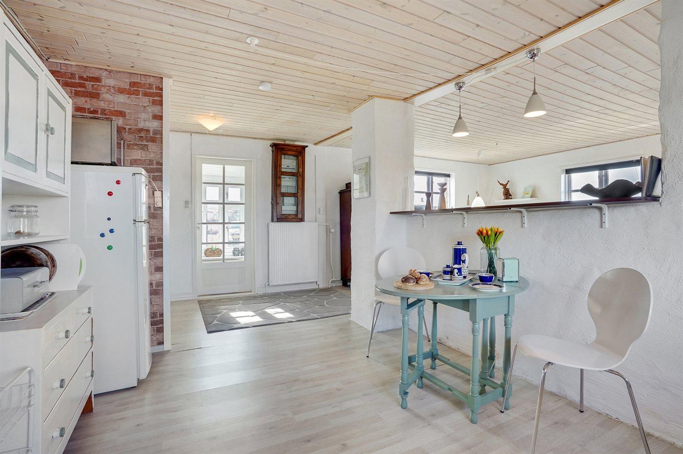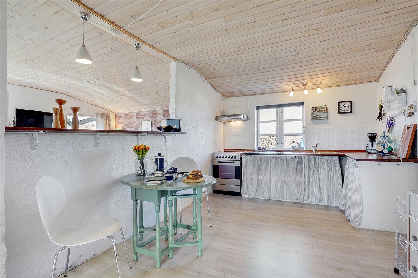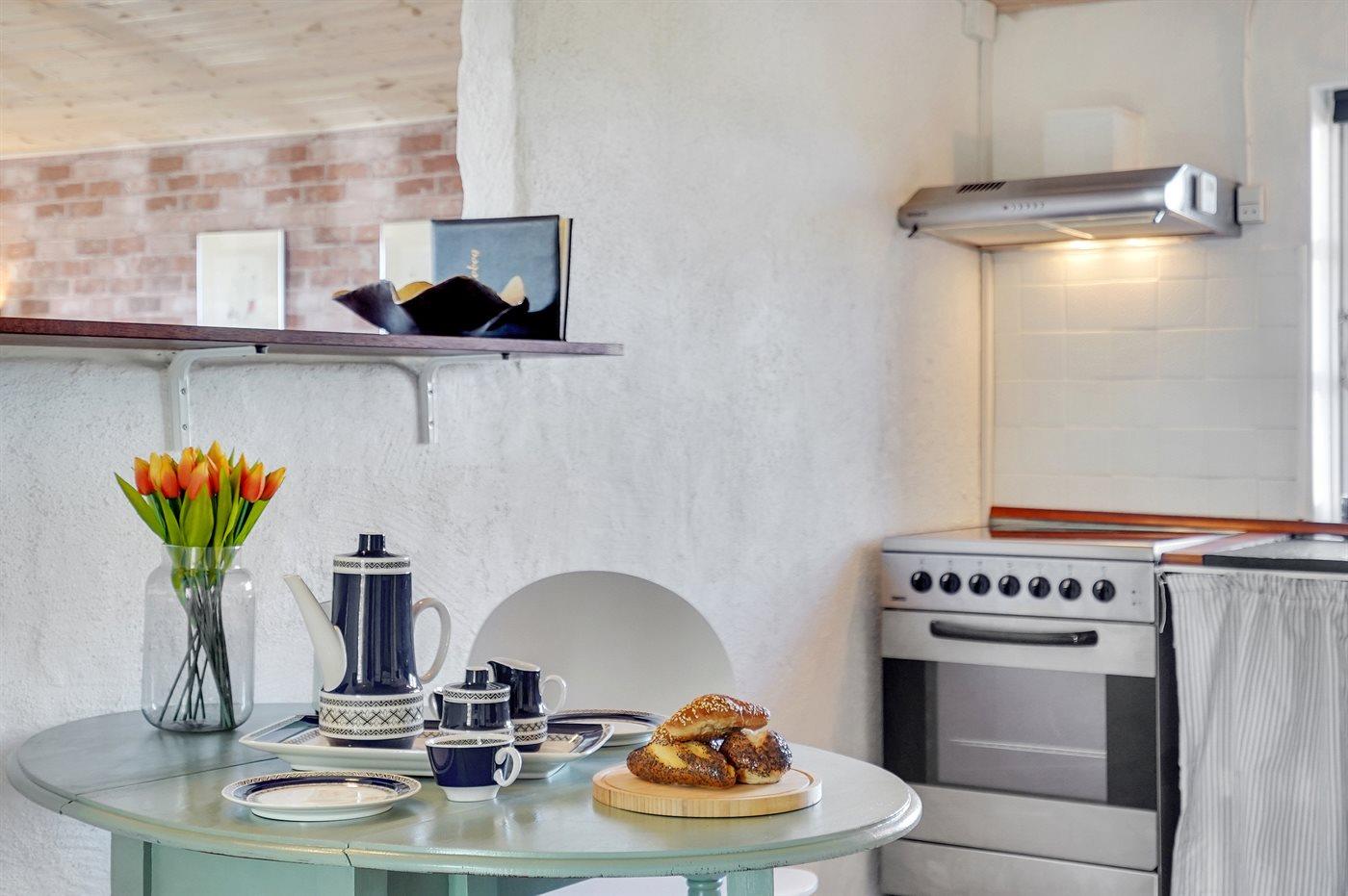 Køkkenet er udstyret med 1 køleskab. Der er 4 keramiske kogeplader, varmluftovn, mikrobølgeovn samt opvaskemaskine.