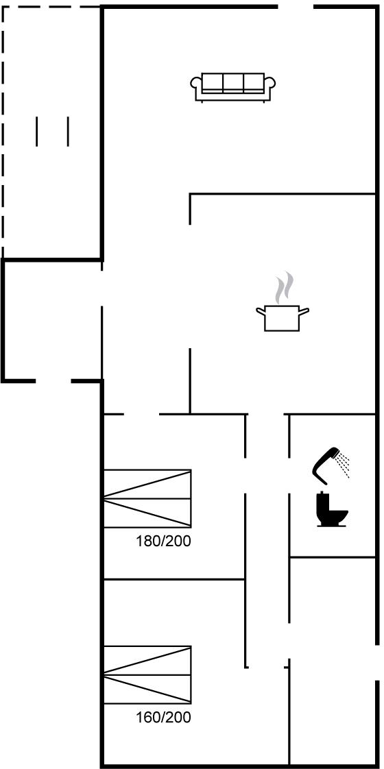 Der er i alt 2 soveværelser. Sovepladserne fordeler sig på: 4 sovepladser i dobbeltsenge.