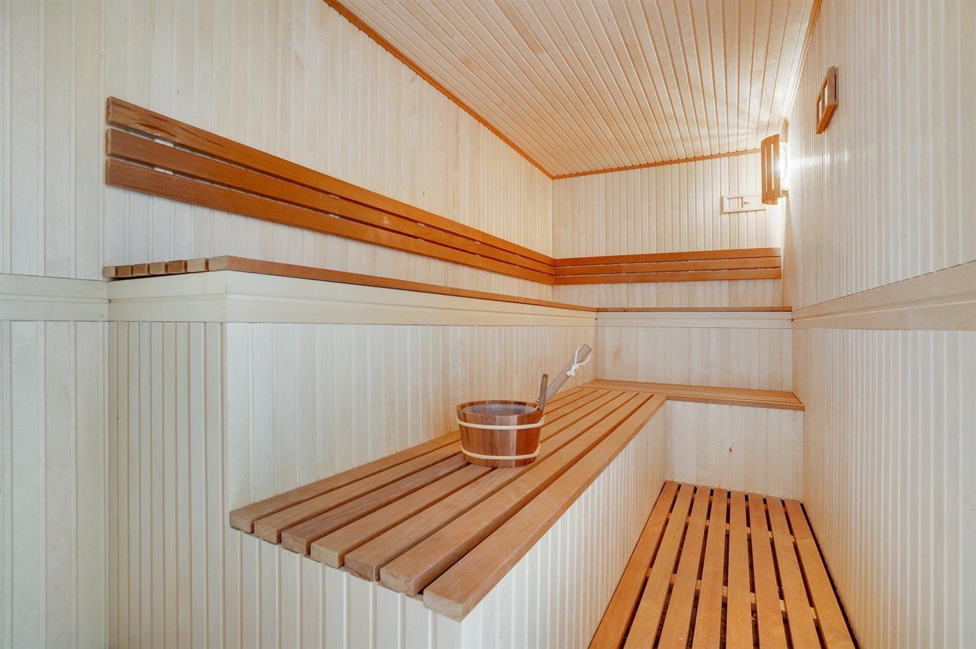 Der er 4 badeværelser med bruseniche og 4 toiletter. Der er gulvvarme på 3 badeværelser. I saunaen er der mulighed for afslapning.