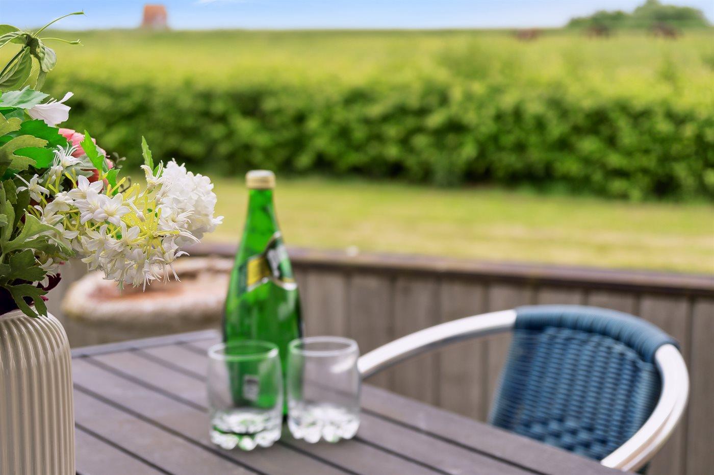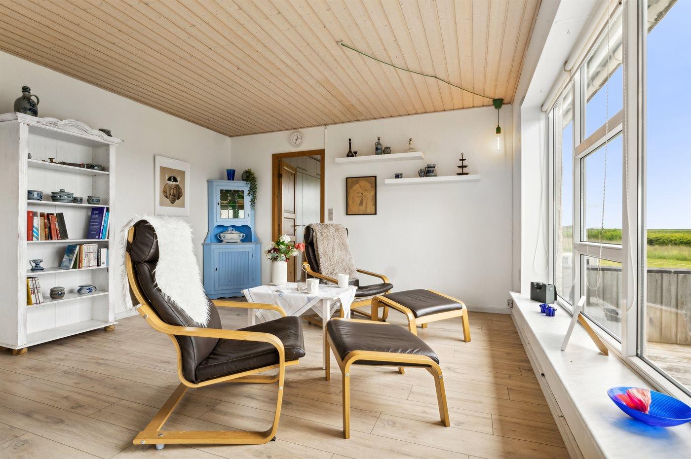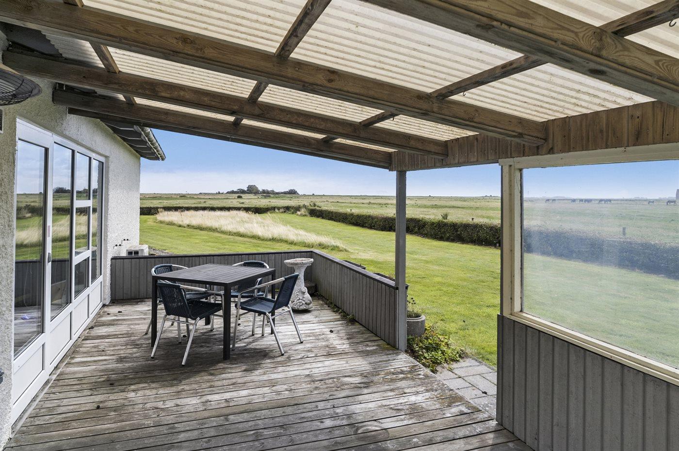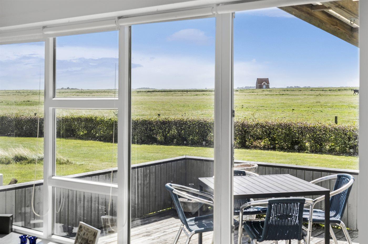 Der er udsigt over markerne mod øst, syd og vest, og du kan se solen gå op fra det ene soveværelse og se den gå ned fra det andet soveværelse. Fra husets store opholdsstue er der udgang til en sydvendt terrasse med fantastisk udsigt over marsken. Vaderhavsfuglene, som gæs, ænder og stære, lander i markerne lige ude for stuen lige som hejre og havørne ofte kigger forbi.