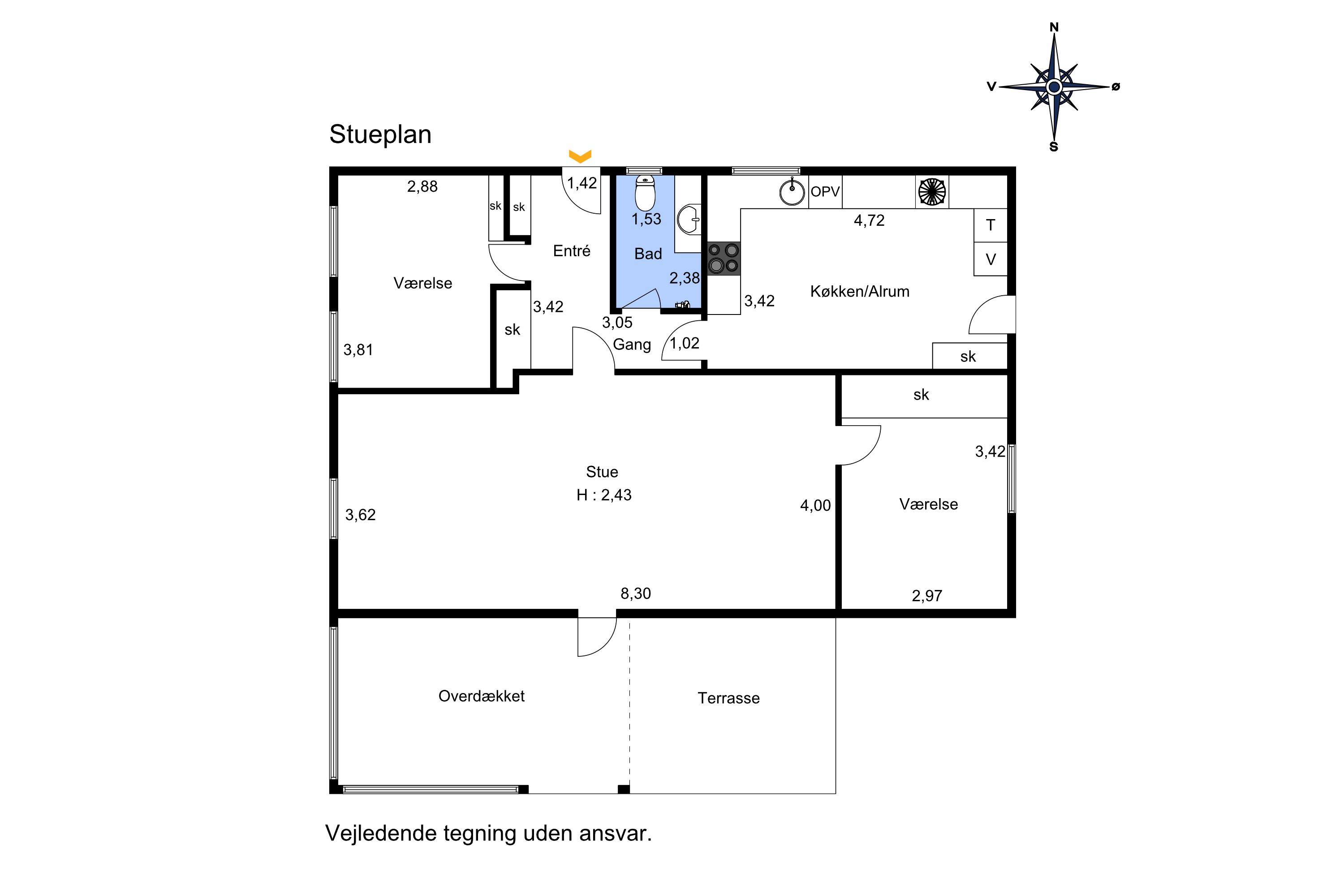 Sommerhuset egner sig til 4 personer. Ferieboligen er på 98 m² og er bygget i 1957. I 2004 gennemgik ferieboligen en delvis renovering. Det er tilladt at medbringe 1 husdyr. Ferieboligen er udstyret med 1 energivenlig luft til luft varmepumpe. Der er gulvvarme i alle klinkegulve. Ferieboligen har vaskemaskine. Tørretumbler. Frysekapacitet på 10 liter.
