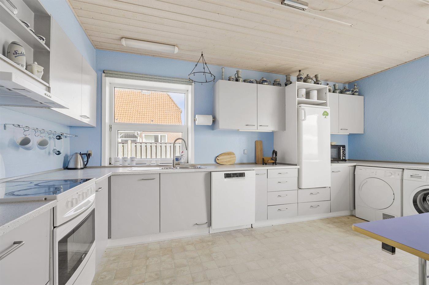 Køkkenet er udstyret med 1 køleskab. Der er 4 keramiske kogeplader, varmluftovn, mikrobølgeovn samt opvaskemaskine.