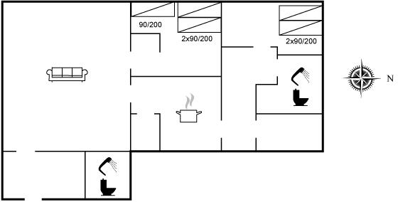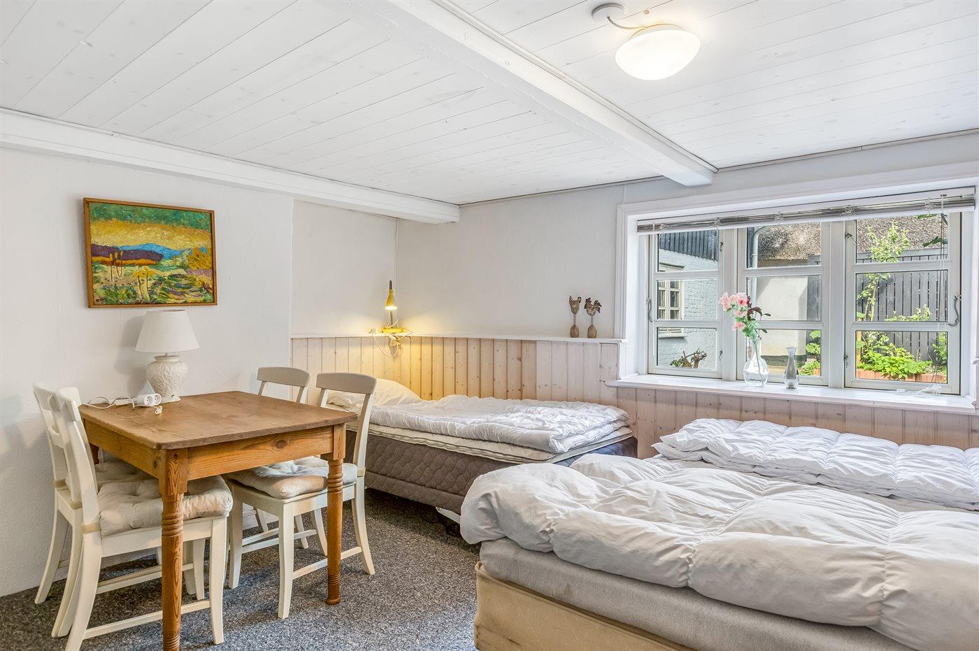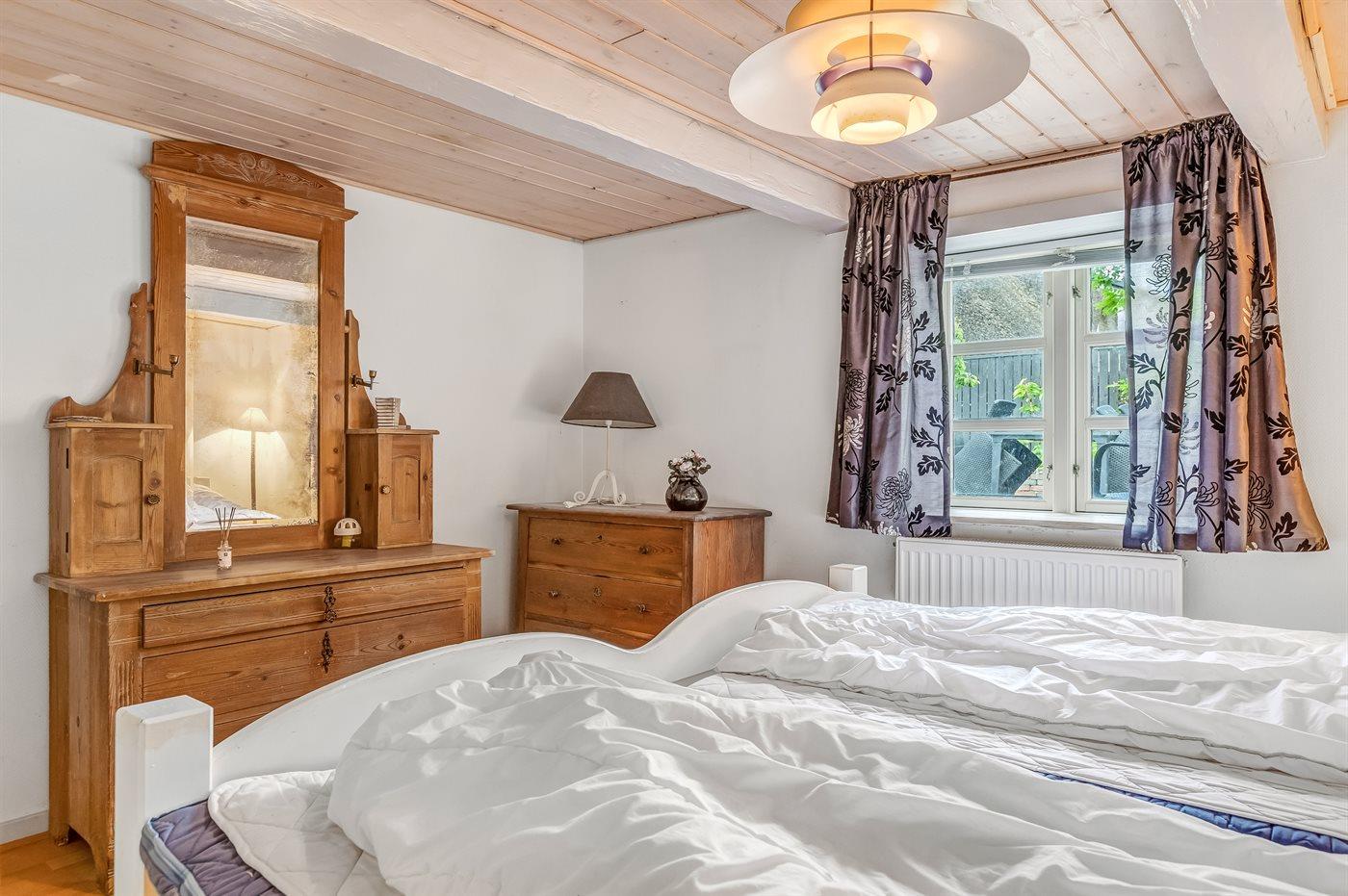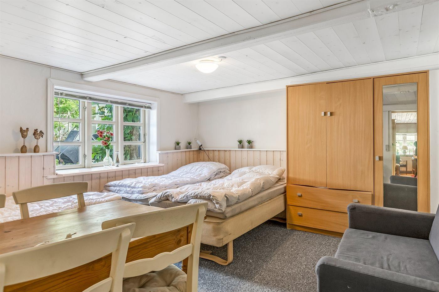 Der er i alt 2 soveværelser. Sovepladserne fordeler sig på: 4 sovepladser i dobbeltsenge. 1 soveplads i enkeltseng. Derudover er der 1 stk. barneseng.