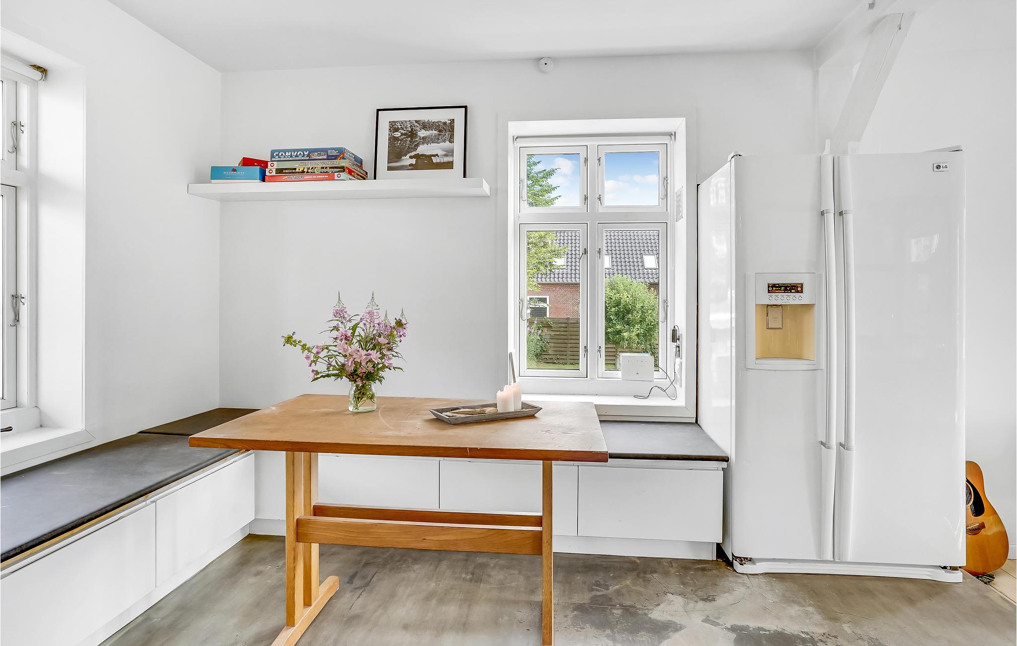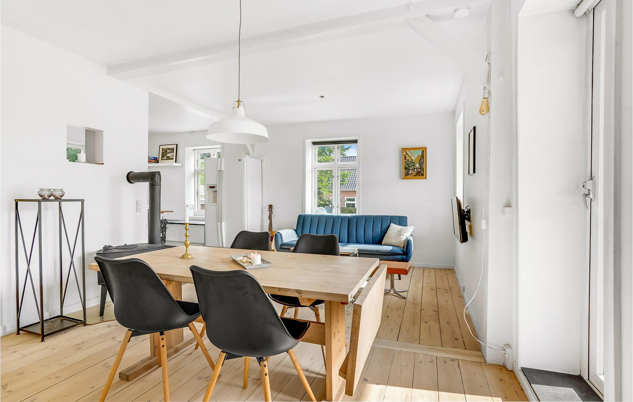 Indbydende og lyst feriehus med brændeovn og terrasse i Sønderjylland nær Vadehavet.