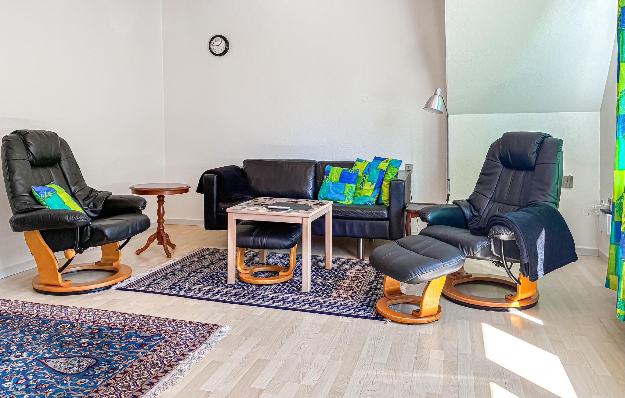 I denne praktiske lejlighed finder I alt, hvad I behøver til en afslappende ferie. Sæt jer godt til rette i siddegruppen, nyd en kop kaffe eller læs en god bog i ro og mag. Og i det lille køkken kan I nemt tilberede lækre retter.