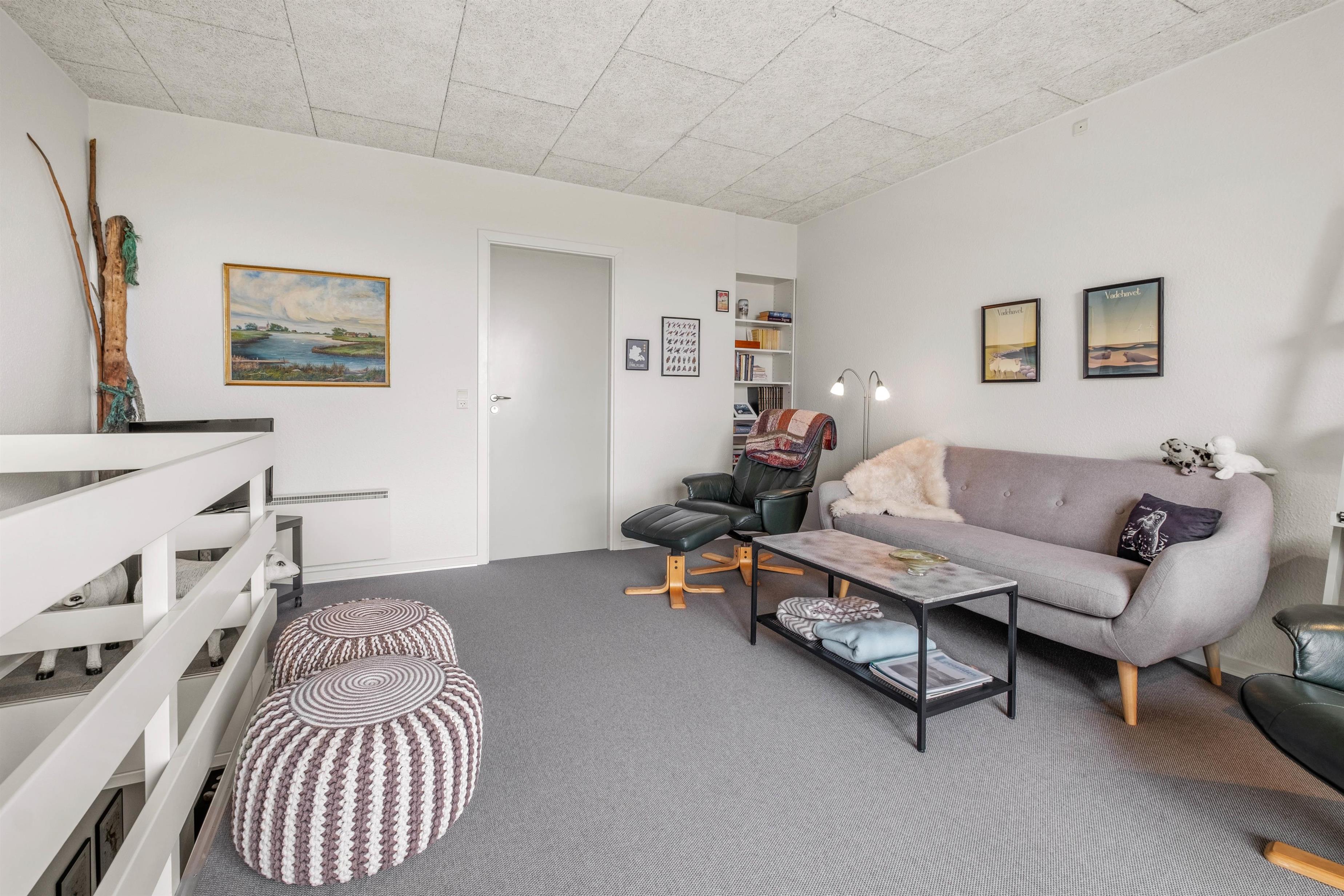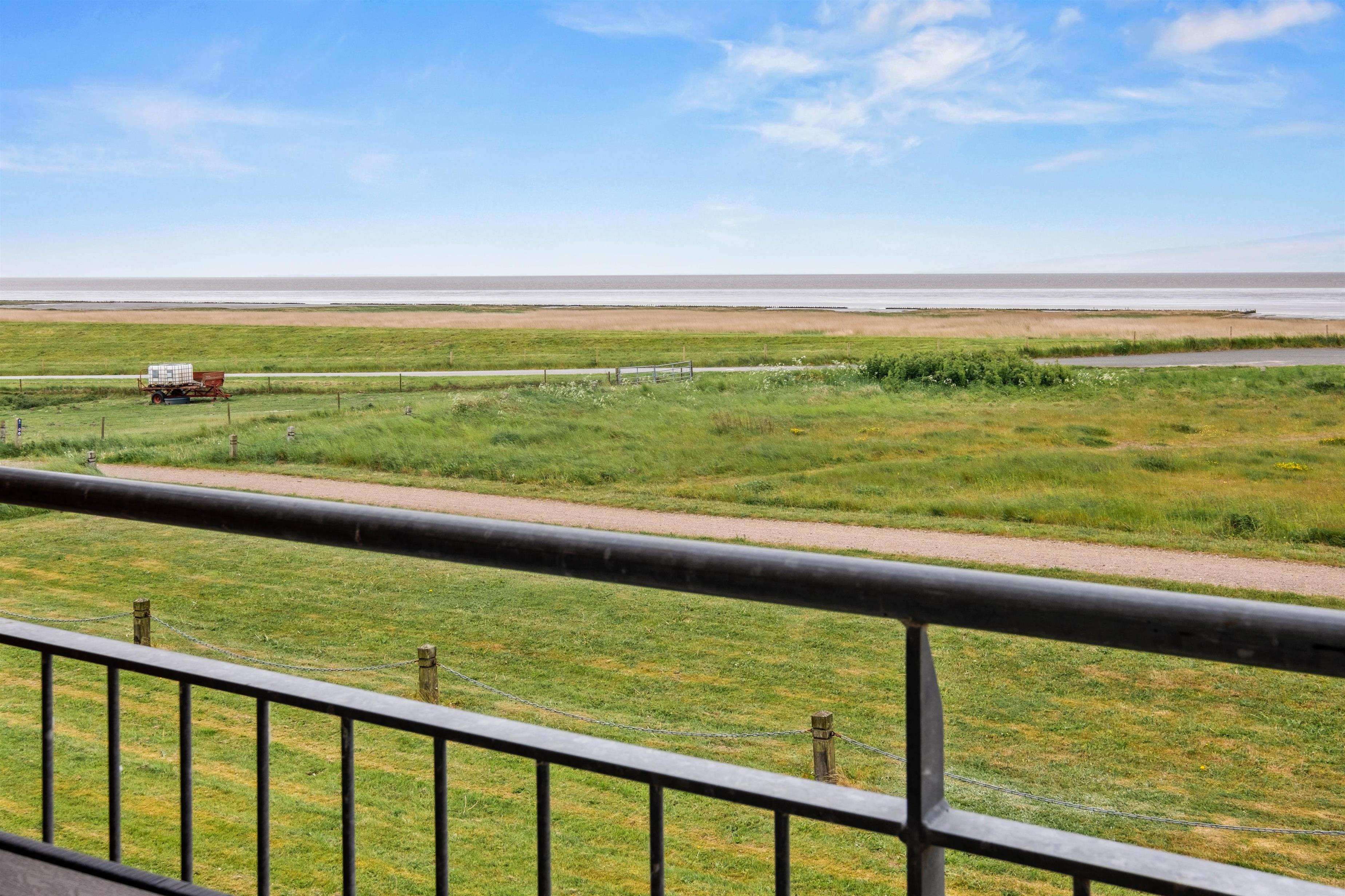 På første sal ligger den hyggelige stue, hvorfra du kan gå ud på altanen. Når du først er på altanen, har du en sensationel udsigt langt ud over Vadehavet.