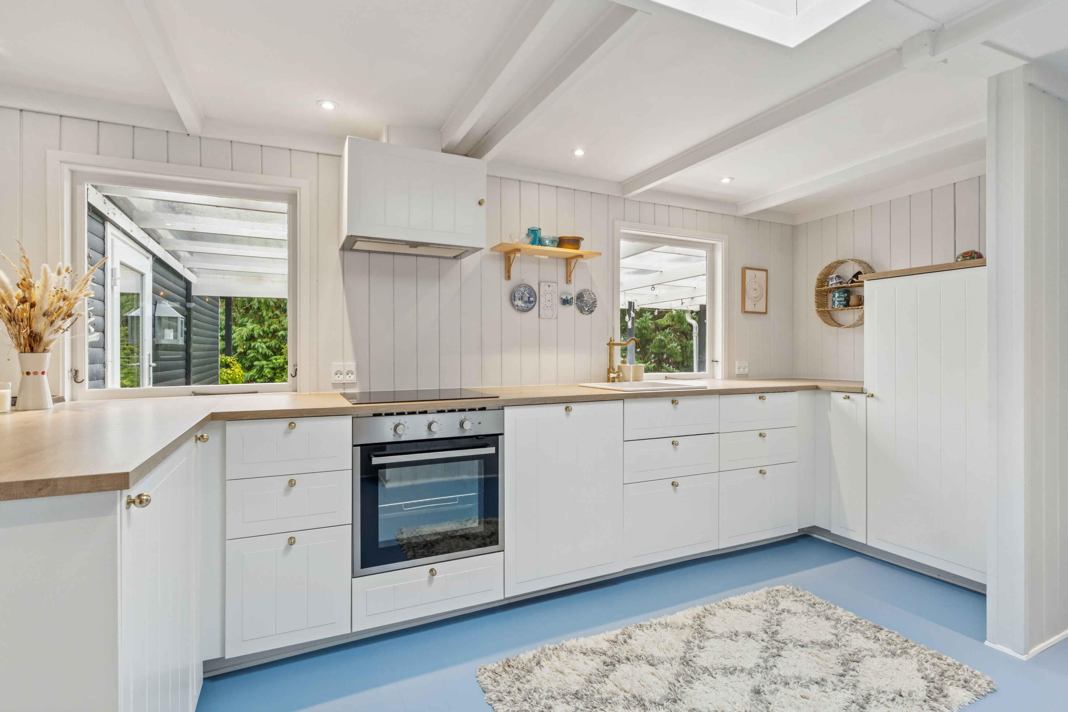 Moderne, nyrenoveret sommerhus på 114 m² med plads til 6 personer. 3 soveværelser, lys stue, stor have og træterrasse. Kun 100 m til vandet og tæt på naturskønne stier, cykelruter, kultur og familievenlige aktiviteter.