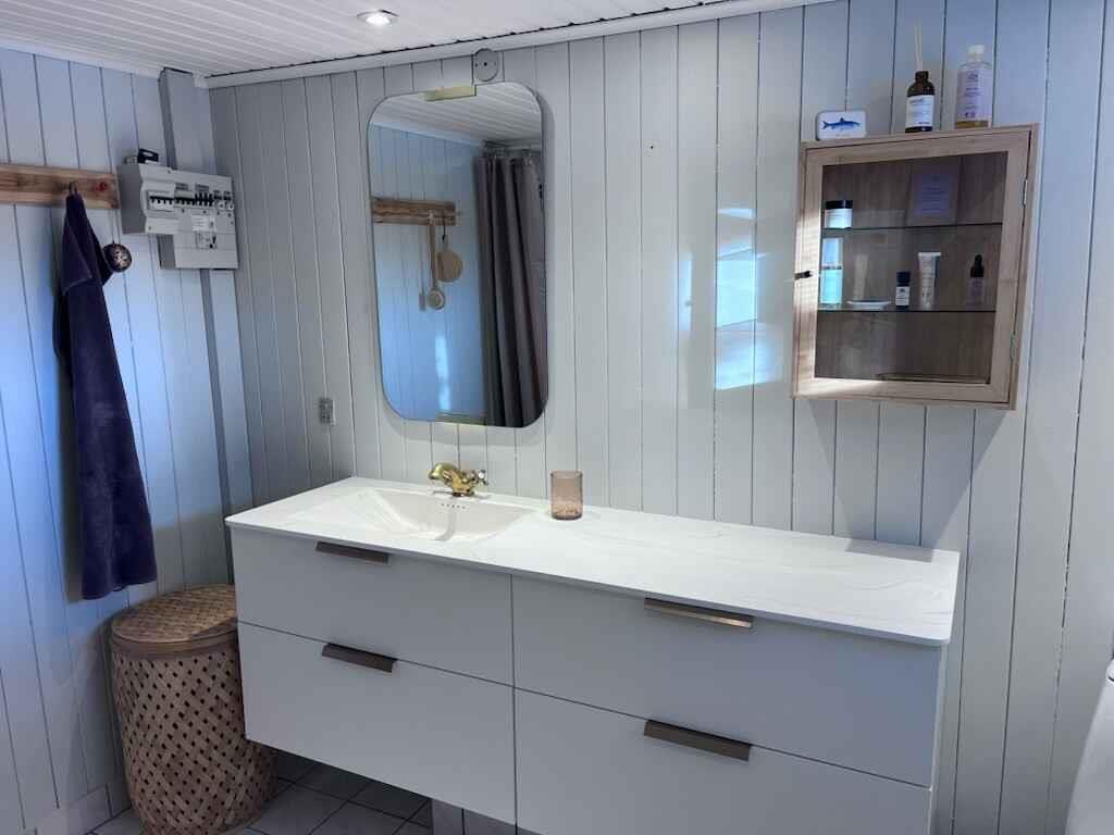 Det moderne, nyrenoverede sommerhus rummer 114 m² med plads til 6 personer fordelt på tre soveværelser. Den lyse, åbne stue samler huset, hvor store vinduespartier giver fornemmelsen af at bringe haven og naturen indenfor. Kun 100 meter fra huset ligger vandet, som hurtigt bliver en naturlig del af ferien. Her kan I bade, fiske eller blot nyde udsigten. Den korte afstand gør det nemt at lade alle generationer tage del i oplevelserne ved vandet. Udenfor finder I en stor have, som indbyder til leg, boldspil og afslapning. Den rummelige træterrasse giver rig mulighed for at nyde solen, spise udendørs eller samle familien til hyggelige aftener under åben himmel. Området byder på et væld af muligheder. Fjorden er kendt for roligt vand, perfekte forhold til sejlads og naturoplevelser på tæt hold. Smukke vandreruter snor sig langs kysten, og cykelture fører jer gennem små landsbyer og åbne marker. Området er også rigt på kulturhistorie med museer og lokale seværdigheder inden for kort afstand. For børnefamilier er der legepladser og gode strande, mens naturelskere kan opleve fugleliv og betagende solnedgange over vandet. Alt i alt et sommerhus, der kombinerer moderne komfort med adgang til natur og aktiviteter – en ideel ramme for en ferie, hvor både ro og oplevelser er i fokus.
