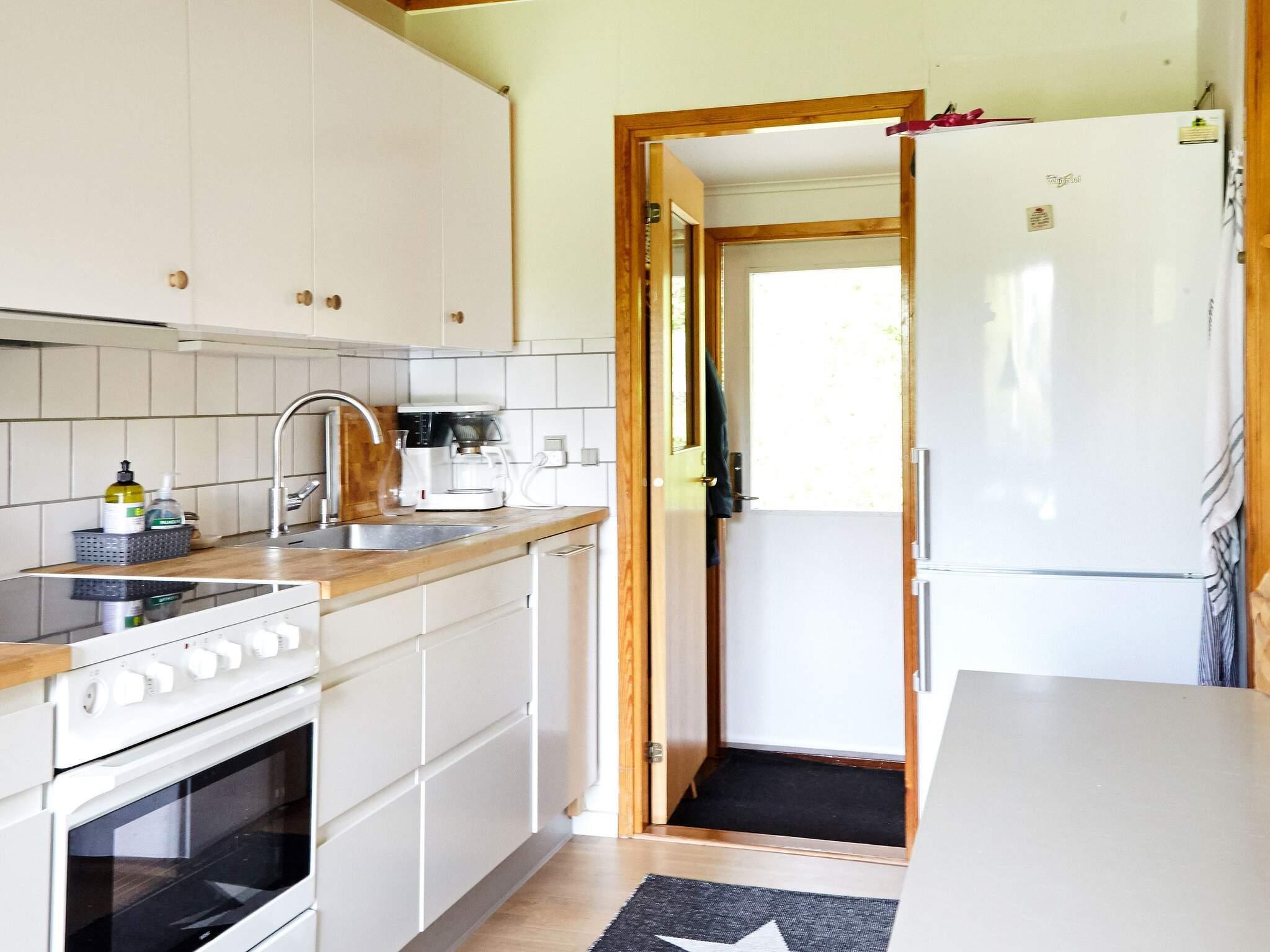 Køkken: El-komfur, køle-frys, emhætte, kaffemaskine, opvaskemask.