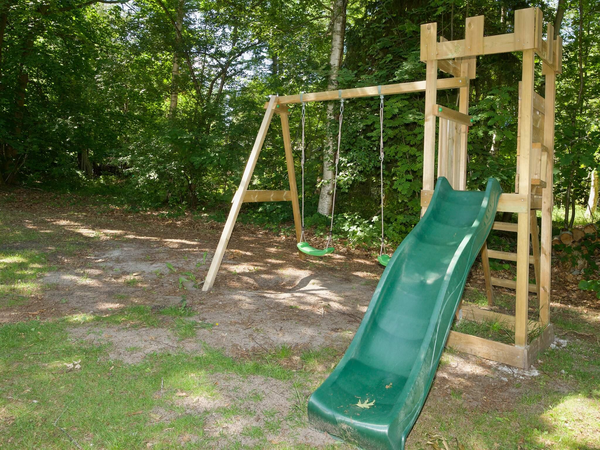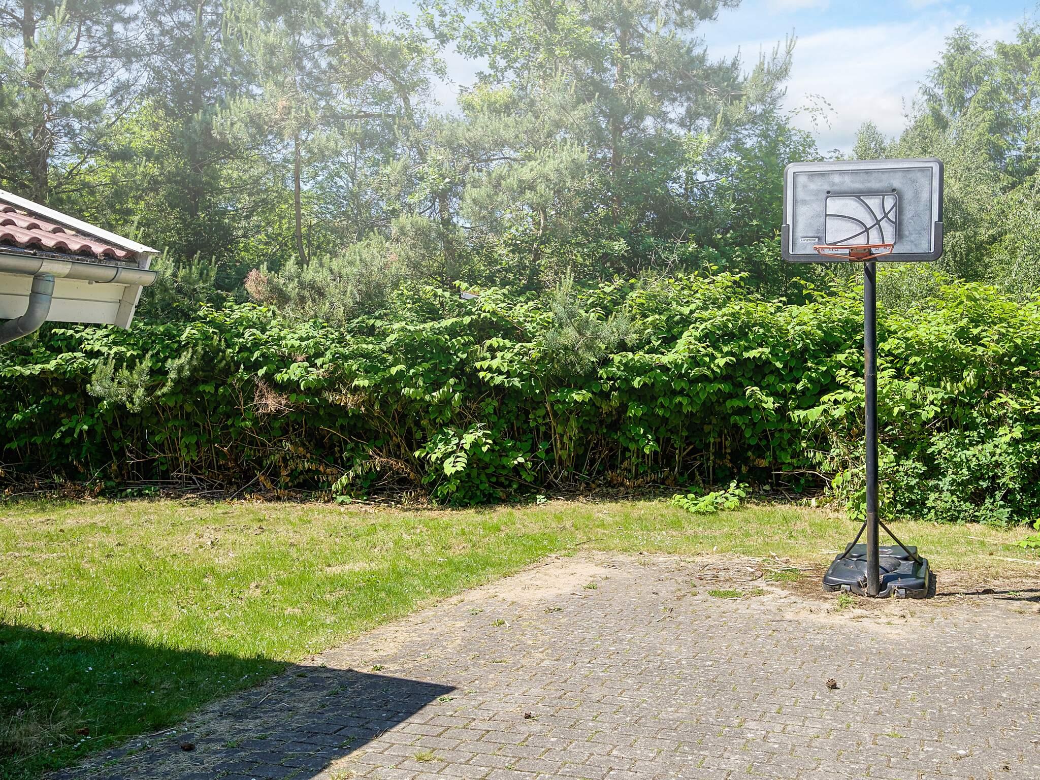 Dette skønne feriehus er beliggende på en pragtfuld ugeneret naturgrund for enden af en blind vej, her er virkelig tænkt på at der skal være plads til børnenes leg, der er stort legetårn med legehus samt basketballkurv, hele familien kan tage en dyst på den anlagte petanquebane i haven.