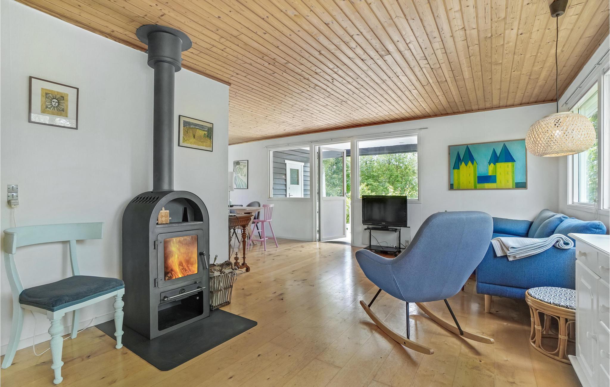 Dette sommerhus ligger på en stille, ugeneret grund, hvor hele familien kan holde en afslappende ferie sammen - selvfølgelig også med jeres hund. Huset er hyggeligt og indrettet i lyse farver og giver et behageligt og velholdt indtryk. Glæd jer til hyggelige stunder i stuen til lyden af ilden, der knitrer i brændeovnen på en kold dag.