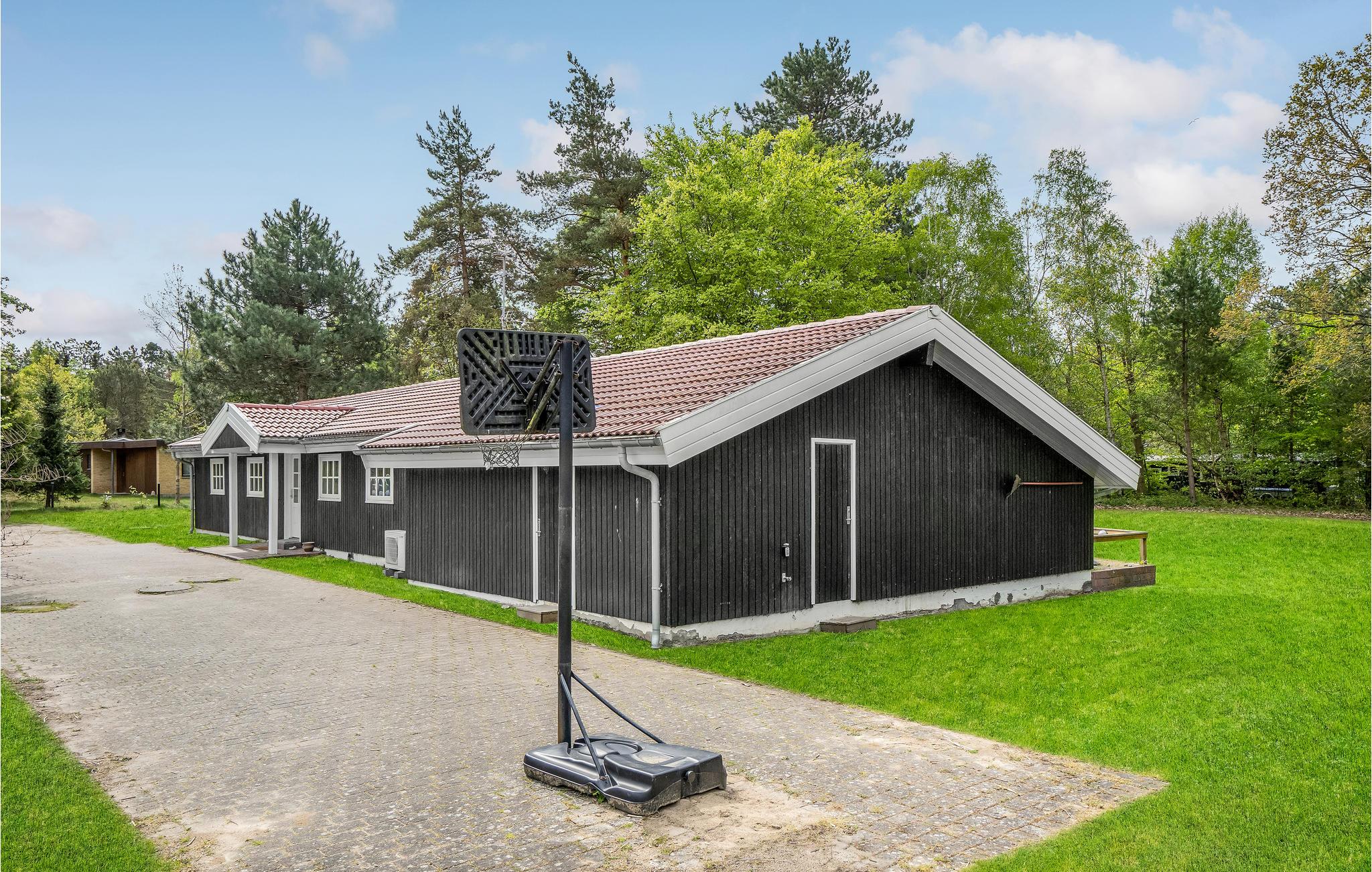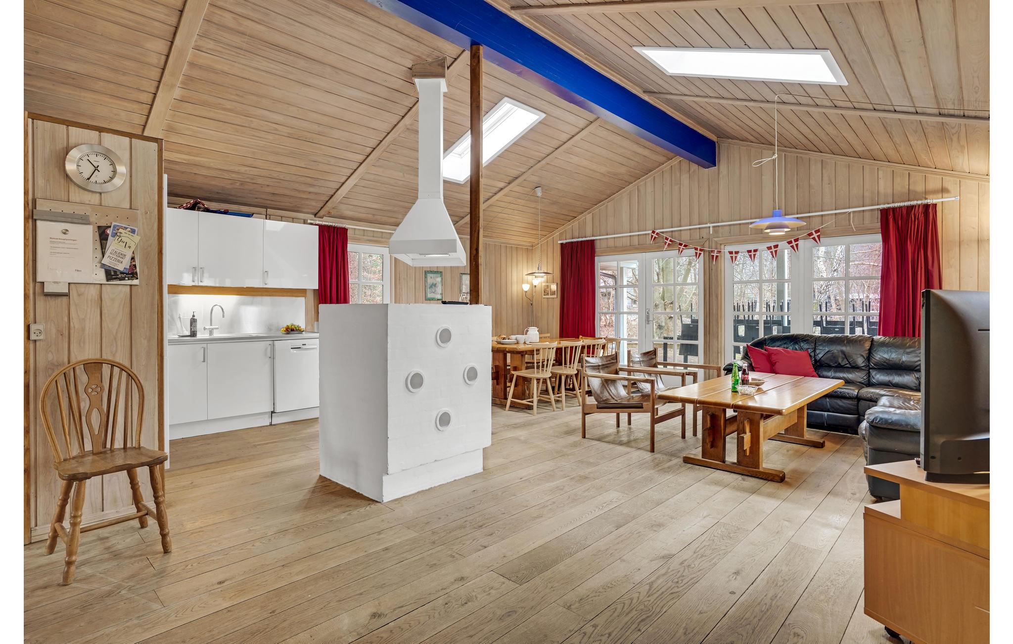 Dette skønne feriehus er beliggende på en pragtfuld ugeneret naturgrund for enden af en blind vej. Når I bliver for svedige af al den motion og leg, kan I køle jer ned i den skønne indendørspool. Huset er indrettet med dejligt åbent køkken i kombination med spisestue/stue med brændeovn, fra stuen er der udgang til utrolig lækker både overdækket og åben terrasse.