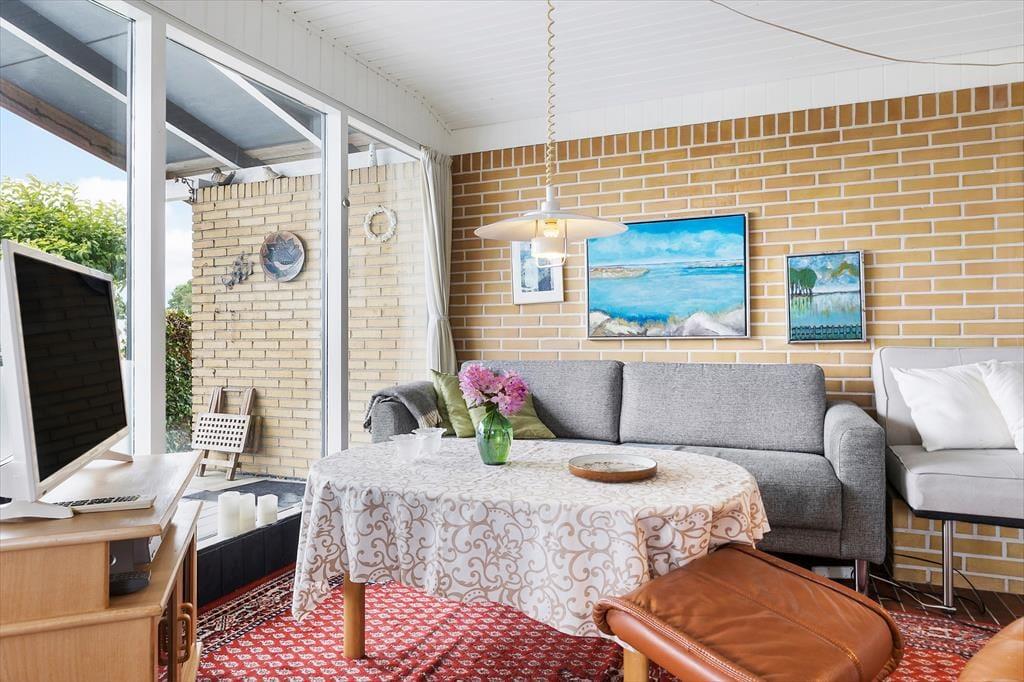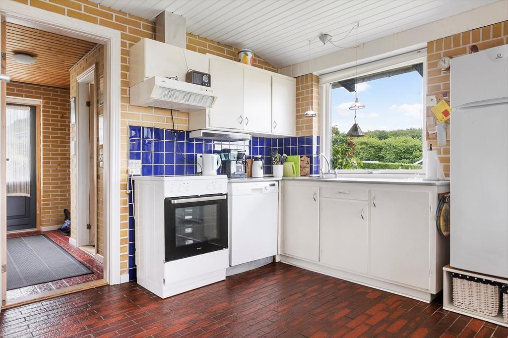 Træd ind i dette hyggelige sommerhus, hvor køkkenet smelter sammen med stuen i en åben og indbydende atmosfære. Den knitrede brændeovn spreder varme og hygge på kølige aftener, og her er alt, hvad du behøver for at nyde kvalitetstid med familie eller venner. De lyse farver og behagelige møbler skaber den perfekte ramme om ferieafslapning.
