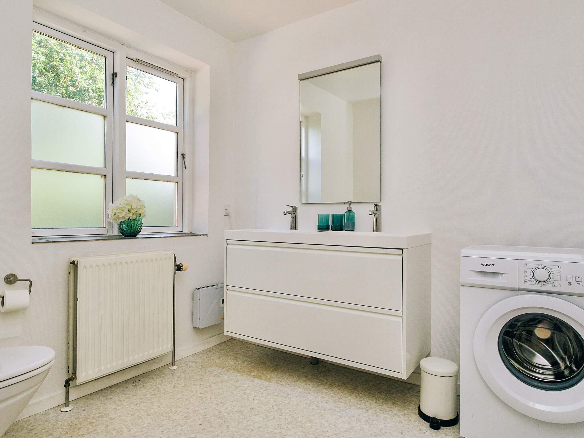 Stort badeværelse med vaskemaskine.