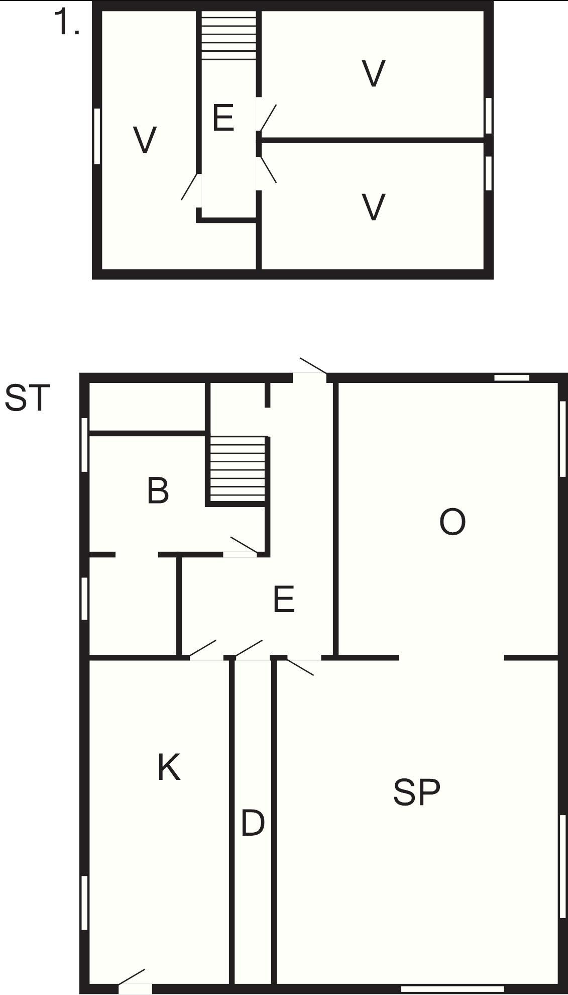1. sal består af 3 værelser heraf et værelse med dobbeltseng og en enkelt seng samt 2 værelser med dobbeltsenge.