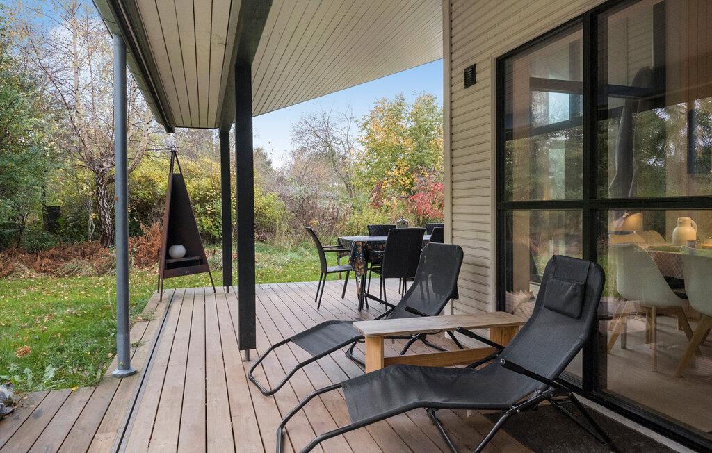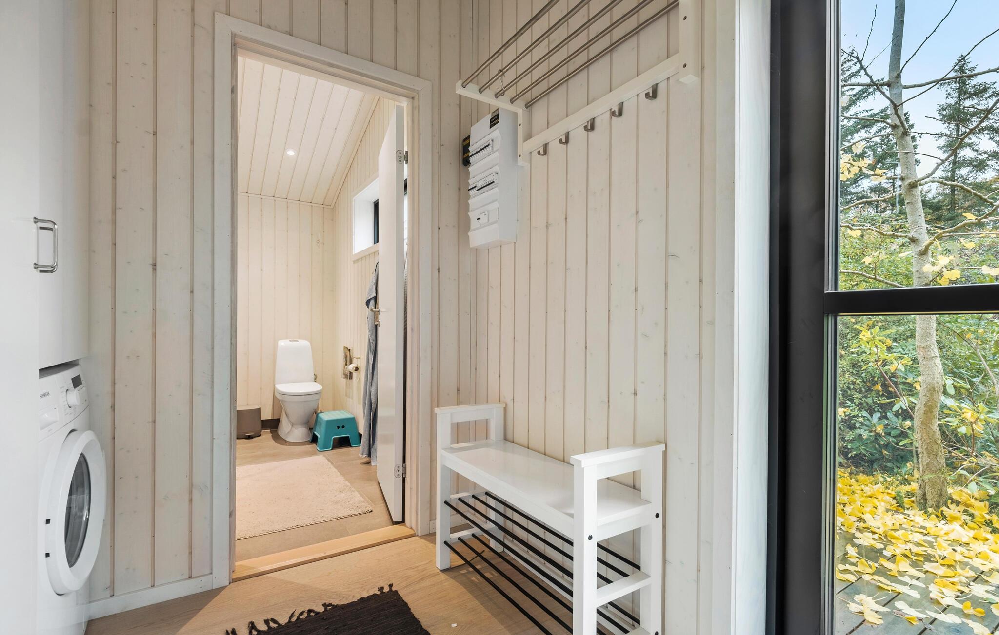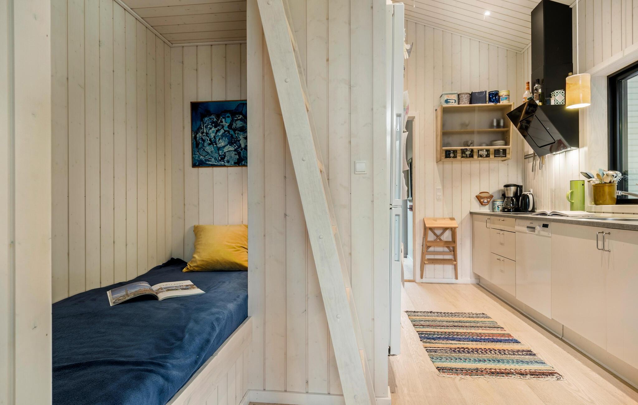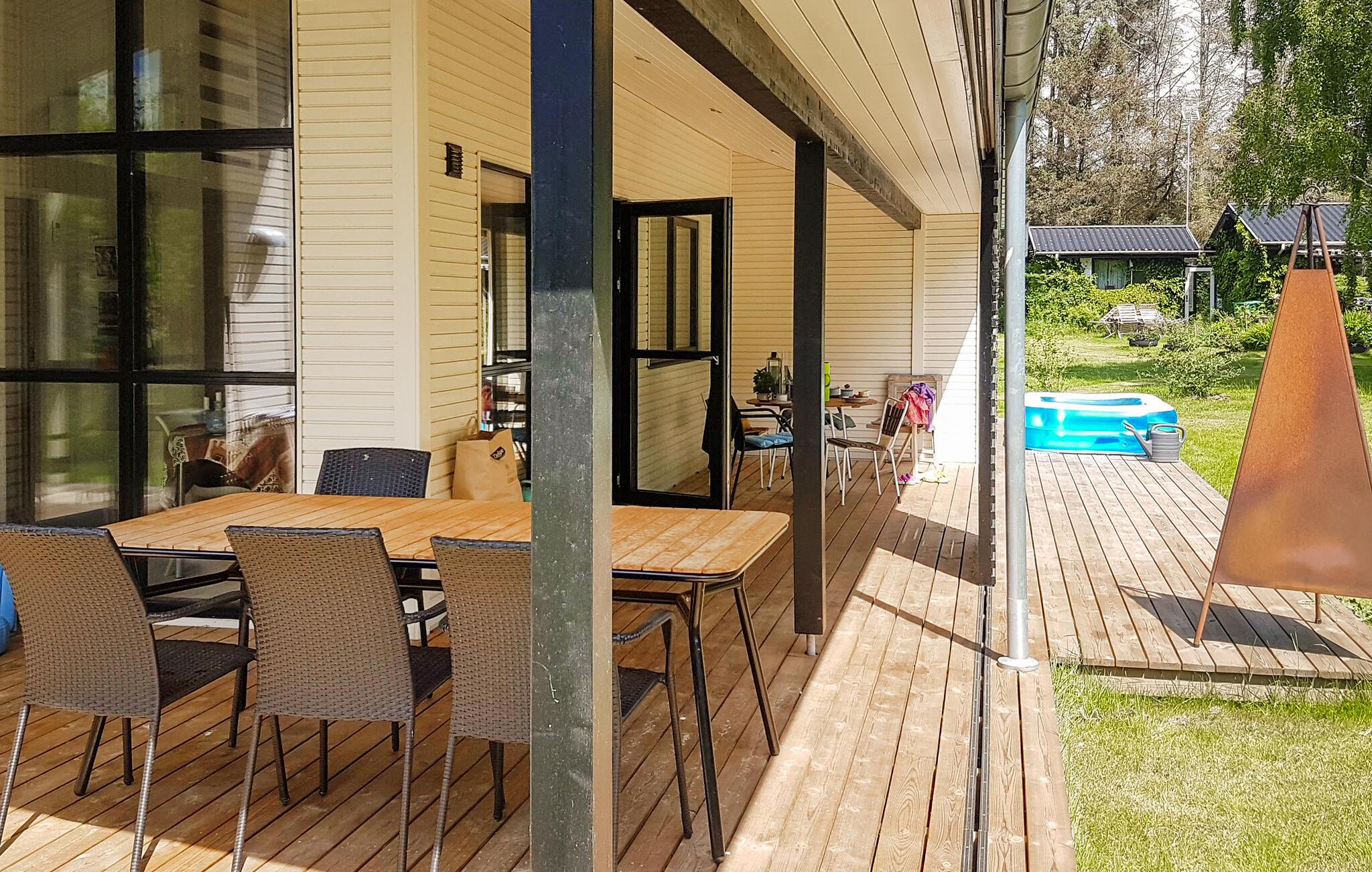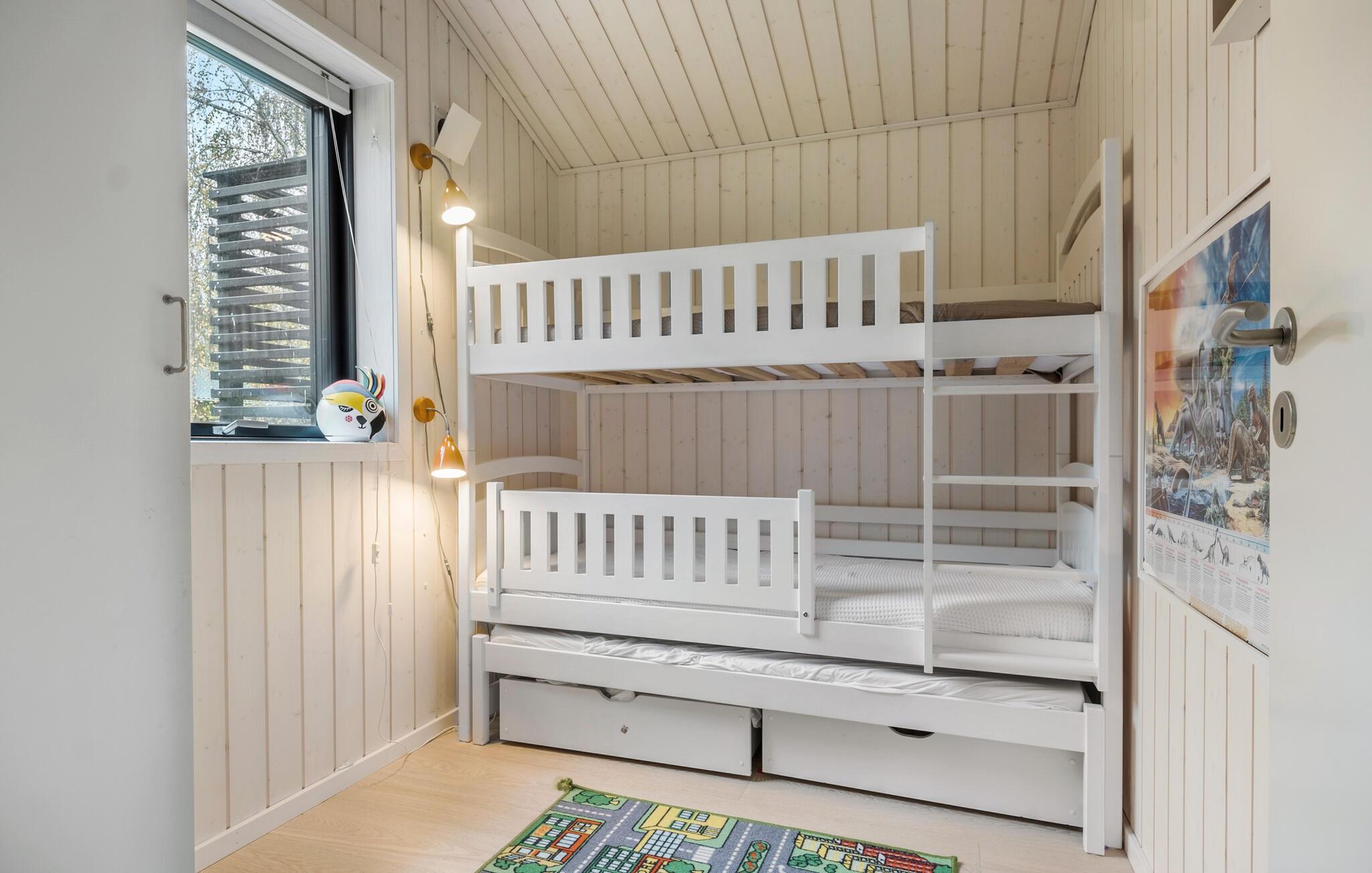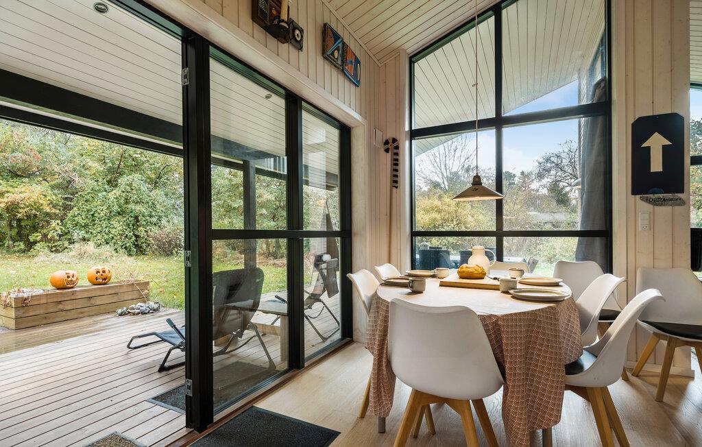 Dette smukke feriehus byder jer og familien på en lys og indbydende atmosfære med kærligt indrettede rum. Indvendigt møder I et moderne design kombineret med hyggelige områder som hemsen og den åbne sovehems – perfekte steder at trække sig tilbage og slappe af. Den familievenlige indretning inviterer også de yngste gæster til at udforske huset. På den rummelige terrasse, delvist overdækket, kan I nyde solens varme i liggestolene, mens børnene leger med havens legeredskaber.