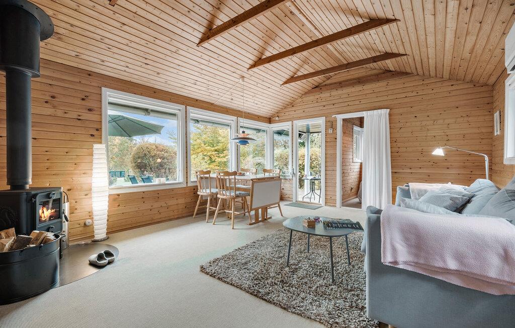Charmerende feriehus nær Høve Strand med have, brændeovn og moderne faciliteter for en afslappende pause.