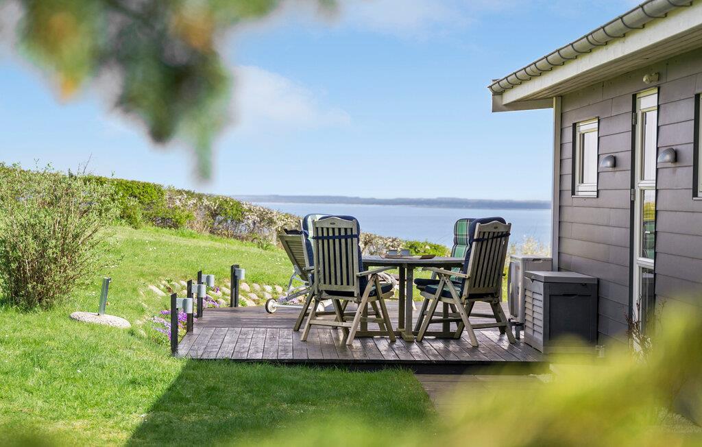 På de varme dage kan I trække udenfor og føle jer i ét med naturen på den skønne træterrasse. Herfra er udsigten om muligt endnu bedre og kan nydes fra morgenstund til solnedgang. Særligt dejligt er det at glide ned i spabadets varme bobler under en stjerneklar himmel med et godt glas vin, mens der lægges planer for de kommende dage.
