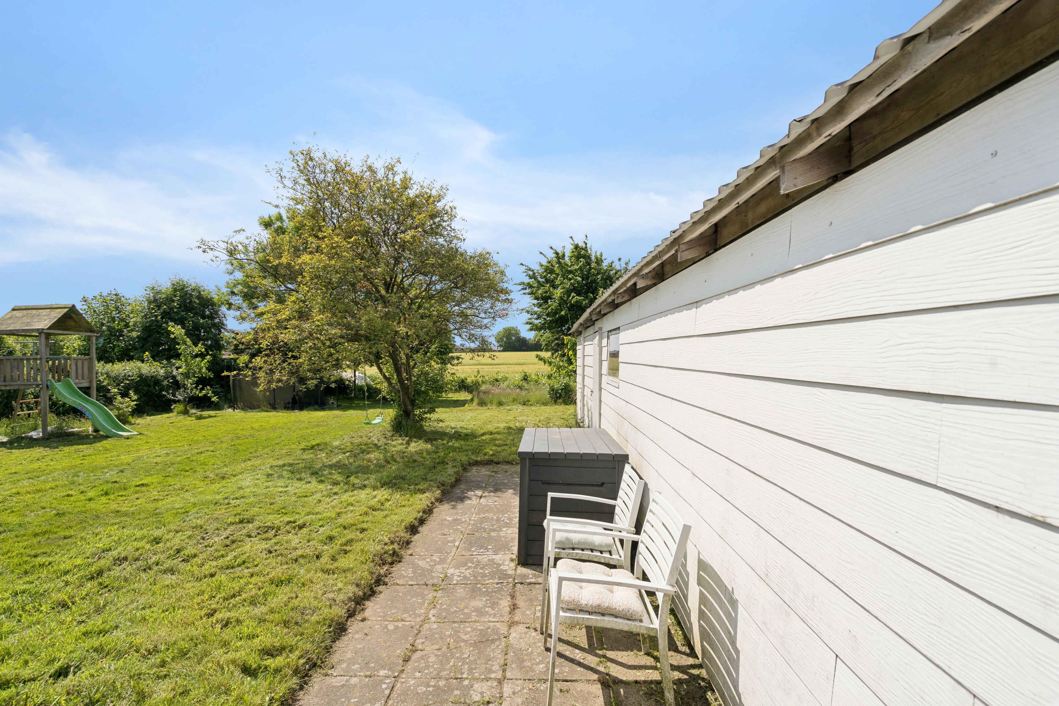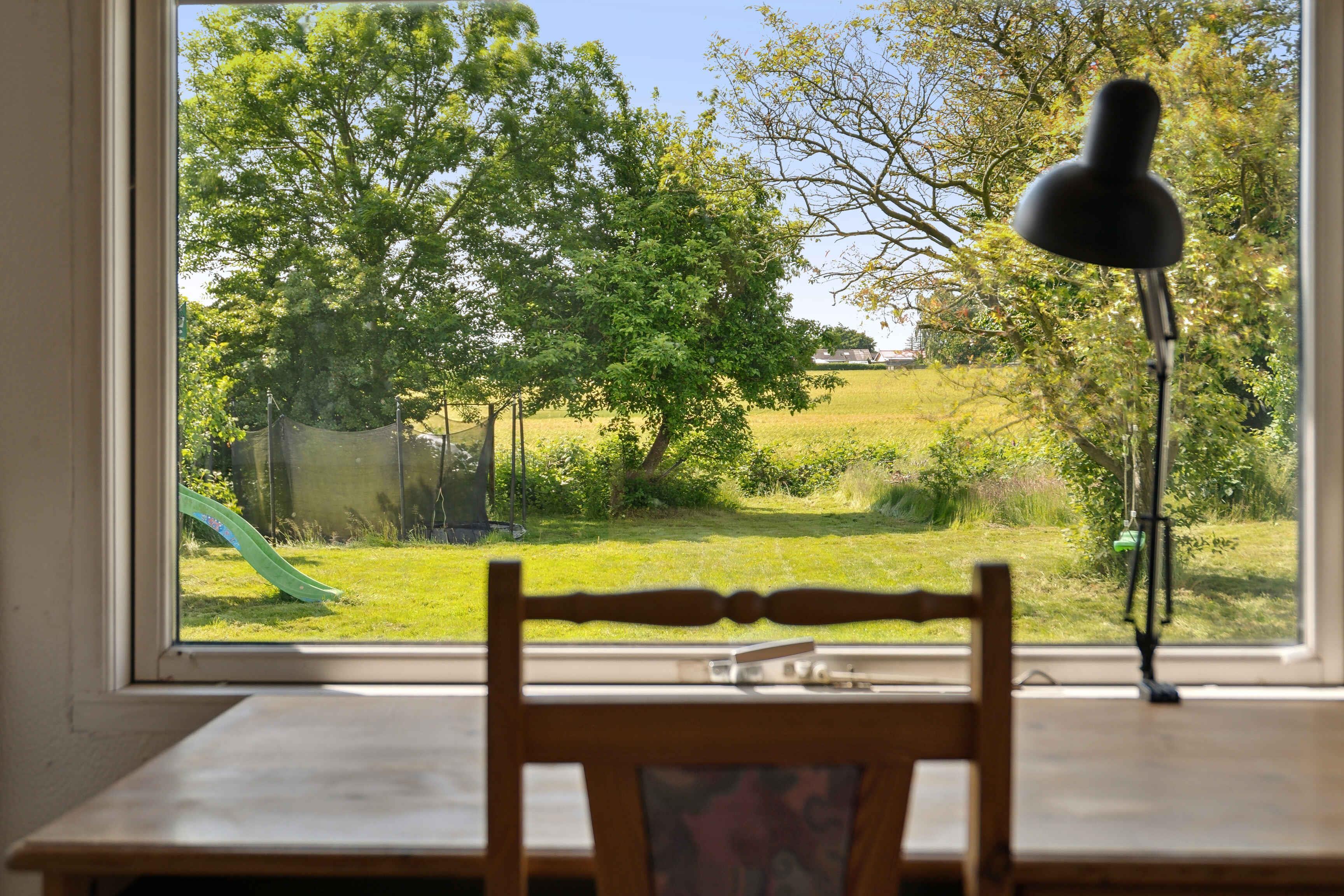 Hyggeligt hus med rummelig have, hvor der er plads til, at børnene kan boltre sig. Fra huset er der kort afstand til både sø og dejlige badestrande. Fra terrassen og udestuen er der dejlig udsigt over den sommetider korngyldne mark.