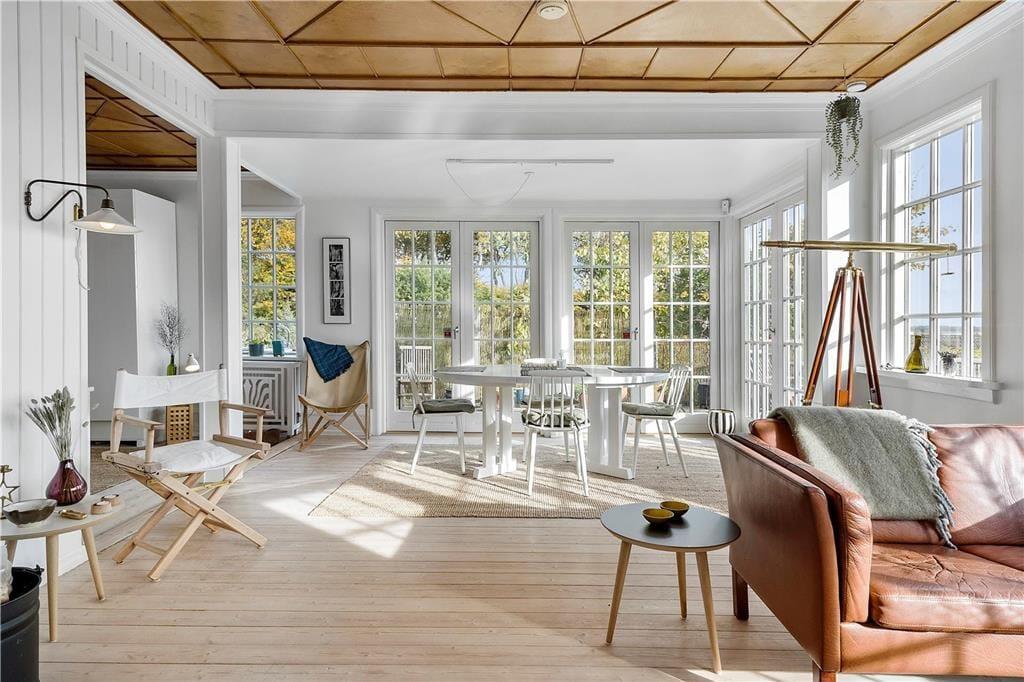 De mange terrasser er uden tvivl en af de helt store attraktioner ved dette hus. At sidde på tagterrassen med morgenkaffen og bare nyde udsigten over den stille fjord, mens solen spejler sig heri – det er intet mindre end eventyrligt. Terrasserne er etableret i både stueplan og på første sal, og de vender mod flere verdenshjørner, så I kan vælge sol eller skygge efter behov.