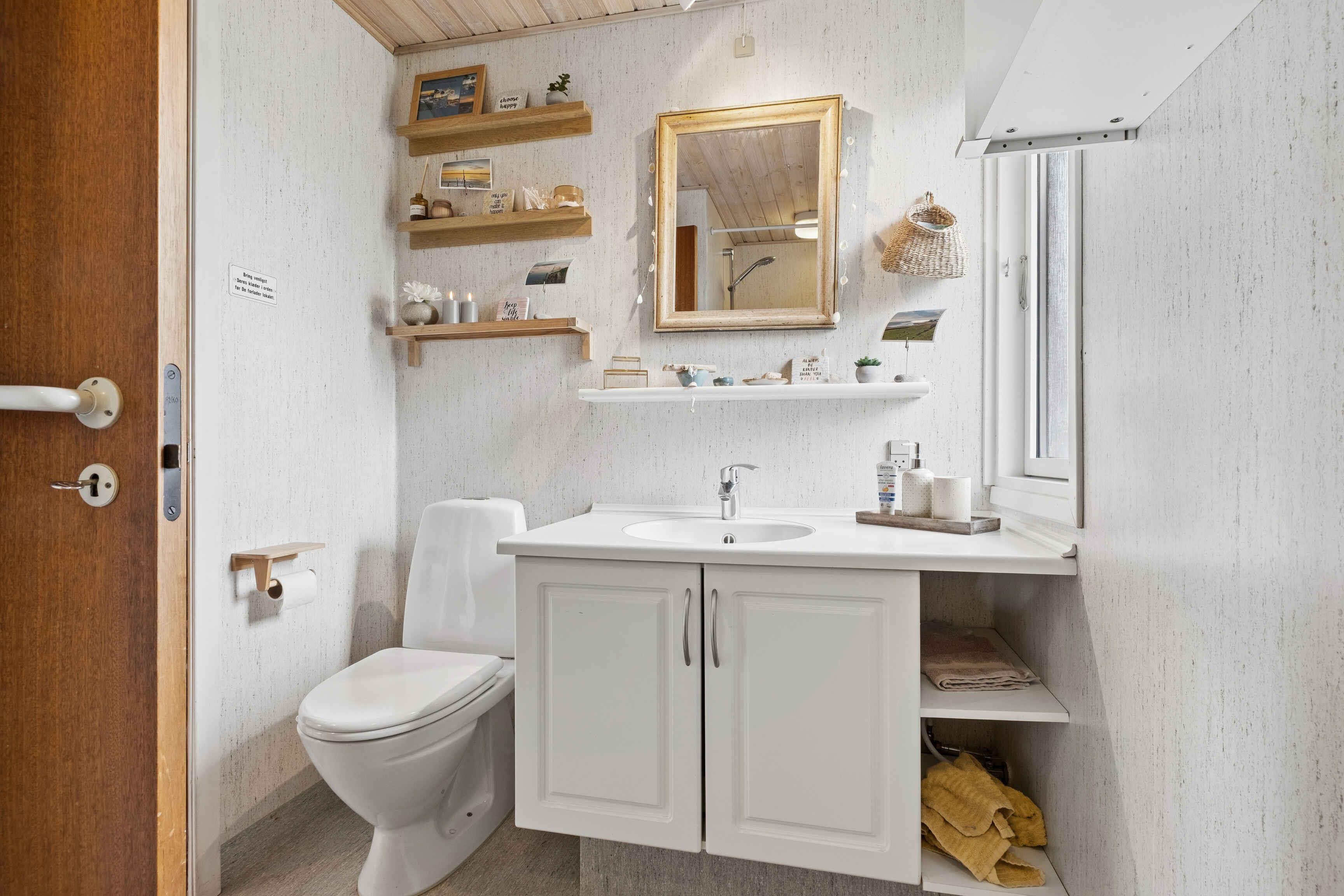 Dette charmerende sommerhus danner rammen om ægte feriestemning i rolige og naturskønne omgivelser tæt på vandet. Huset byder på en lys og rummelig stue med synlige bjælker og højt til loftet, som skaber en varm og indbydende atmosfære – perfekt til afslapning og samvær. Den hyggelige udestue fungerer som spiseplads og danner samlingspunkt for husets gæster. Derudover rummer sommerhuset et soveværelse og et gæsteværelse, mens det tilhørende anneks giver ekstra sengepladser og privatliv med eget toilet – oplagt til gæster eller større børn. Udendørs kan ferien nydes i fulde drag. Her er en dejlig terrasse til de lange, varme sommeraftener, shelter til hyggelige naturoplevelser og fodboldmål, der indbyder til leg og bevægelse. Den korte afstand til vandet og de fredelige omgivelser gør stedet ideelt for både afslapning og aktive feriedage. Et sommerhus, hvor minder skabes – år efter år