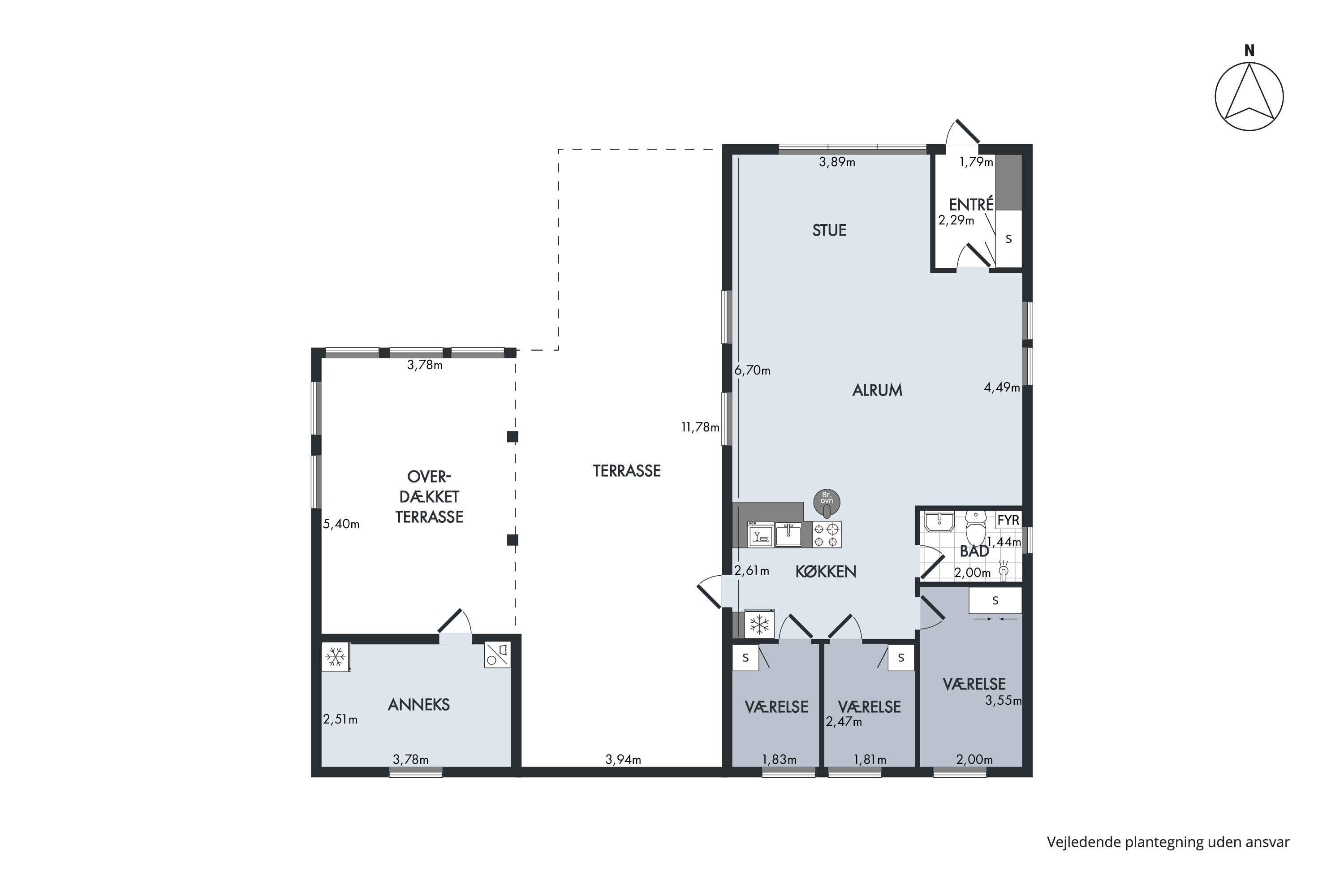 Beliggende på en rolig blind vej finder du dette indbydende sommerhus omgivet af en privat naturgrund. Her er fred, ro og et rigt dyreliv. Huset præsenterer sig lyst med hvidmalede trævægge. Vældige vinduespartier i stuen byder naturen indenfor. Fuldt udstyret køkken åbner sig mod en terrasse og en overdækket terrasse, begge med spisepladser. Grillaftener? Intet problem, en stor grill venter. Indvendigt garanterer 3 soveværelser med 6 kvalitetssenge komfortabel hvile. Det ene soveværelse, annekset og stuen er forsynet med fladskærm-tv, alle med Cromecast. I Annekset er det yderligere 2 kvalitetssenge i en køjeseng, og en sovesofa med 2 ekstra sovepladser. Haven byder på aktiviteter for alle. Fra trampolin, stigegolf, dart, petanque til corn-hole spil. Hvis I er til mad over bål, så står bålpladsen er klar! Kort afstand fra Kattegat's sandbank "Hawaii" med dejligt badevand. Øster Hurup, kun 6 km væk, byder på en børnevenlig strand og indendørs badeland. Oplev rådyr, fasaner og egern tidligt om morgenen. Fiskerientusiaster har også flere valgmuligheder i nærheden. Butikker, charmerende bymiljøer, musik om sommeren og et udvalg af restauranter venter i nærliggende Øster Hurup. En idyllisk beliggenhed, perfekt for en afslappende ferie