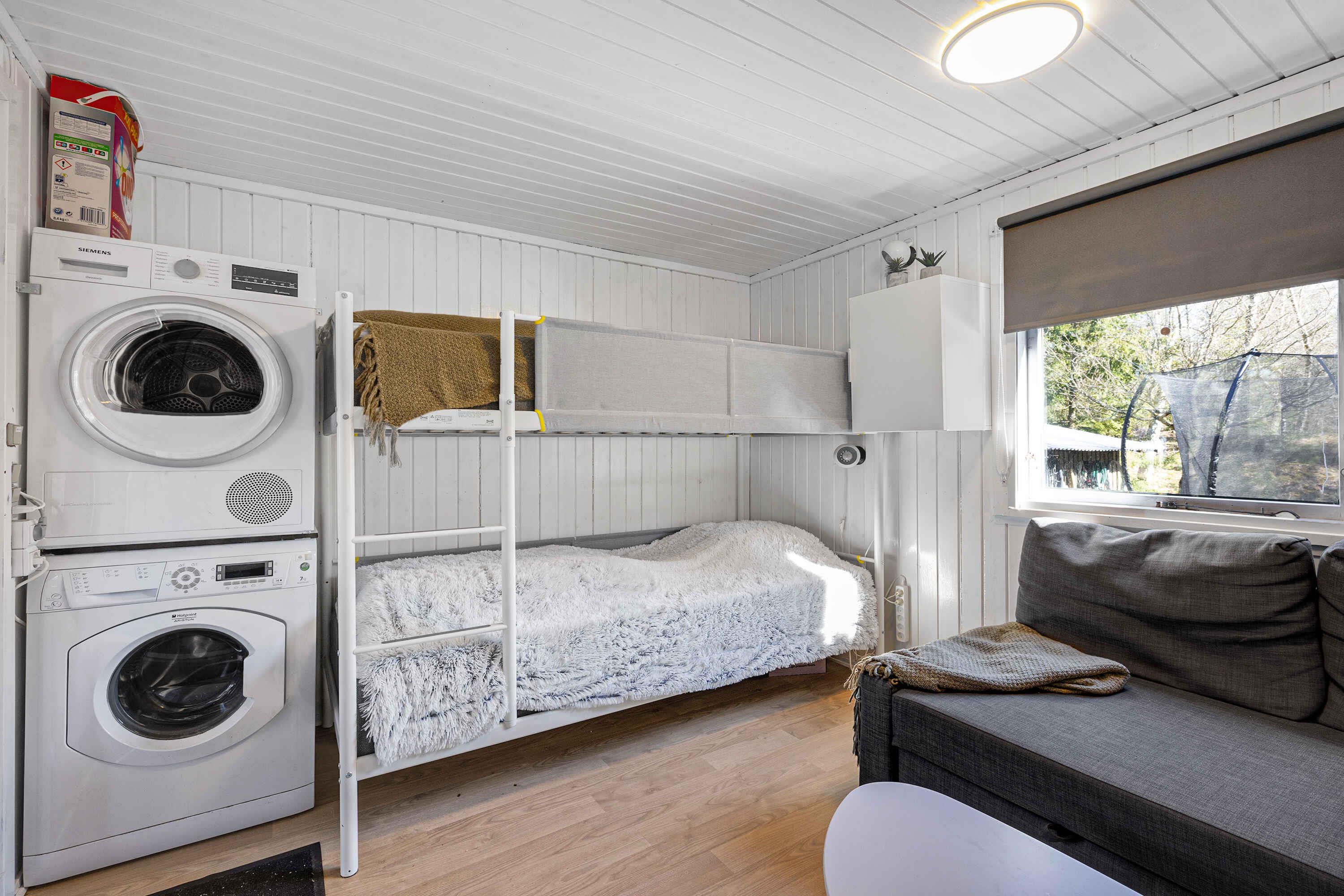 Utrolig hyggeligt sommerhus, der ligger i på stor ugeneret grund med flot natur. Der er masser af udendørsaktiviteter på grunden som f.eks Basketball, Petanque, Cornhole mm. Der er masser af stier i områder hvor du kan cykle og gå en tur.