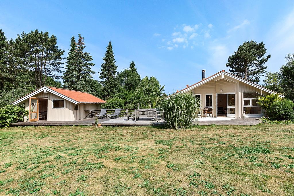 Sommerhuset ligger for enden af en lukket vej, hvilket sikrer fred og ro under hele jeres ophold. Den hyggelige terrasse er perfekt til at samle familien til morgenmad under åben himmel eller afslappende aftener med grill og stjernekig. Haven indbyder til leg, hygge og afslapning i naturens skød. Start morgenen med en tur i morgenkåben ned til den nærliggende, børnevenlige strand, hvor en forfriskende dukkert venter. Området byder også på flere smukke stier, hvor I kan gå eller cykle gennem det naturskønne landskab – en perfekt måde at opleve den omkringliggende natur på.