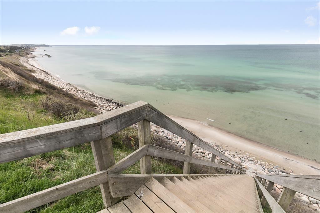 Med kun 50 meter til den nærmeste strandtrappe er det nemt at starte dagen med en morgendukkert eller tage lange gåture langs kysten. Stranden er børnevenlig med lavt vand, sand og små høfder, der gør det til et perfekt sted for både leg og afslapning.