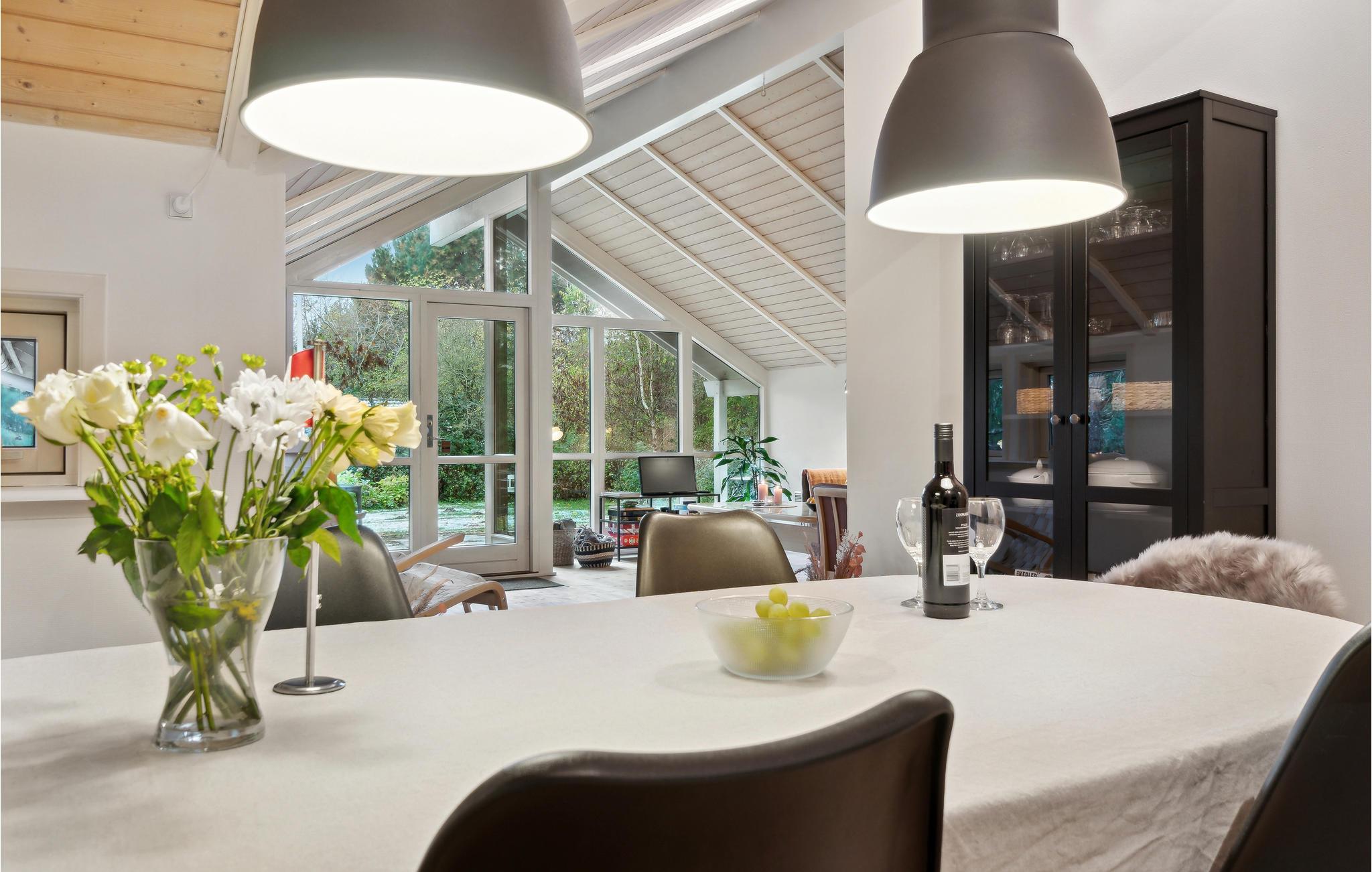 Mærk følelsen af endelig at være på ferie og smæk fødderne op, mens ilden flammer i brændeovnen, eller nyd grillmad på terrassen. Her er der mulighed for det hele på alle tider af året. Så snart I træder ind i huset, vil I med det samme bemærke den lyse atmosfære og den familiære stemning. Huset udstråler hygge og komfort og indbyder til afslapning. Her venter underholdende spilleaftener. Beliggenheden i det meget rolige boligområde er ideel, hvis I gerne vil være tæt på stranden, som I hurtigt kommer til via trapper.