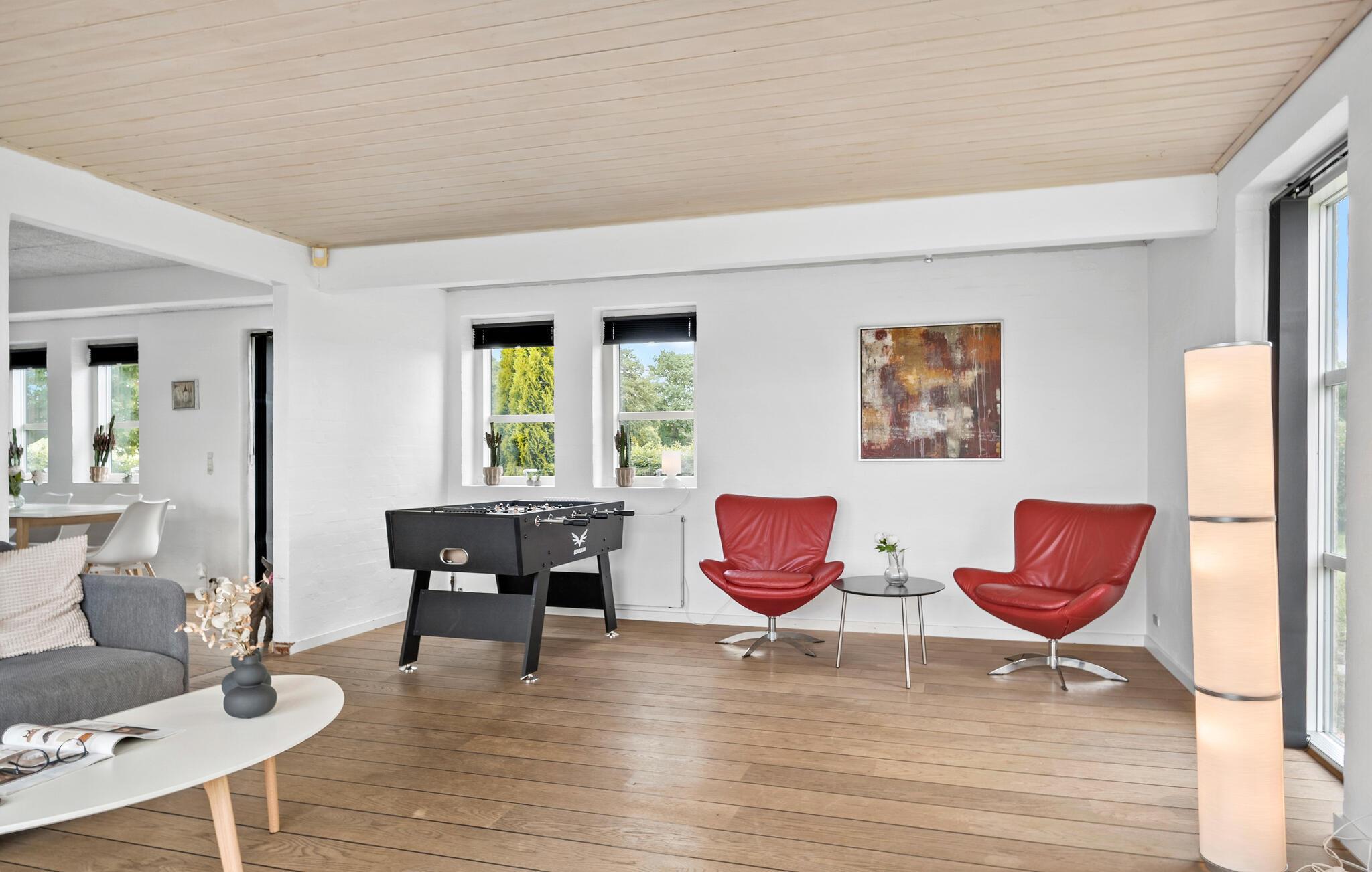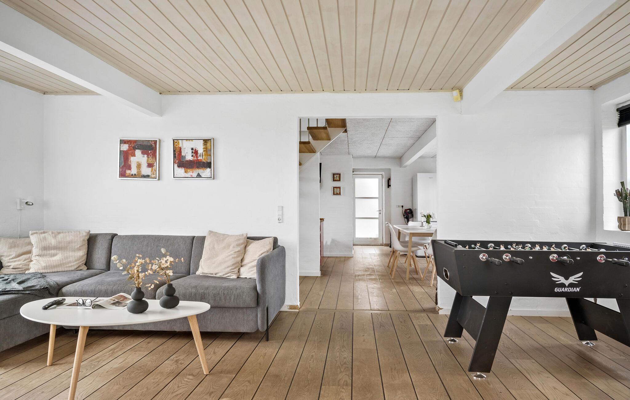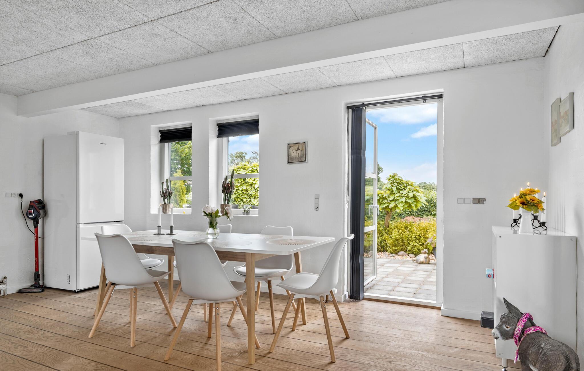 Denne indbydende villa kan blive en herlig ramme om jeres næste ferie. Opholdsstuen har store vinduespartier og en lys og luftig indretning, så her får I gode forhold til samværet i feriedagene. Dæk op til dagens måltider ved spisebordet og læn jer godt tilbage i sofaen, når dagen går på hæld. Imens kan I nyde udsigten til haven, hvor børnene sikkert løber rundt og har det sjovt.