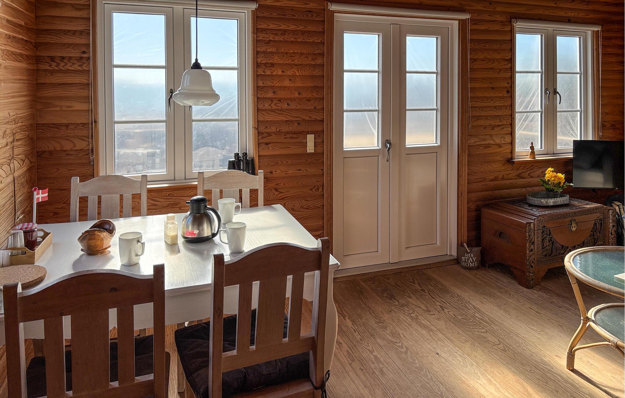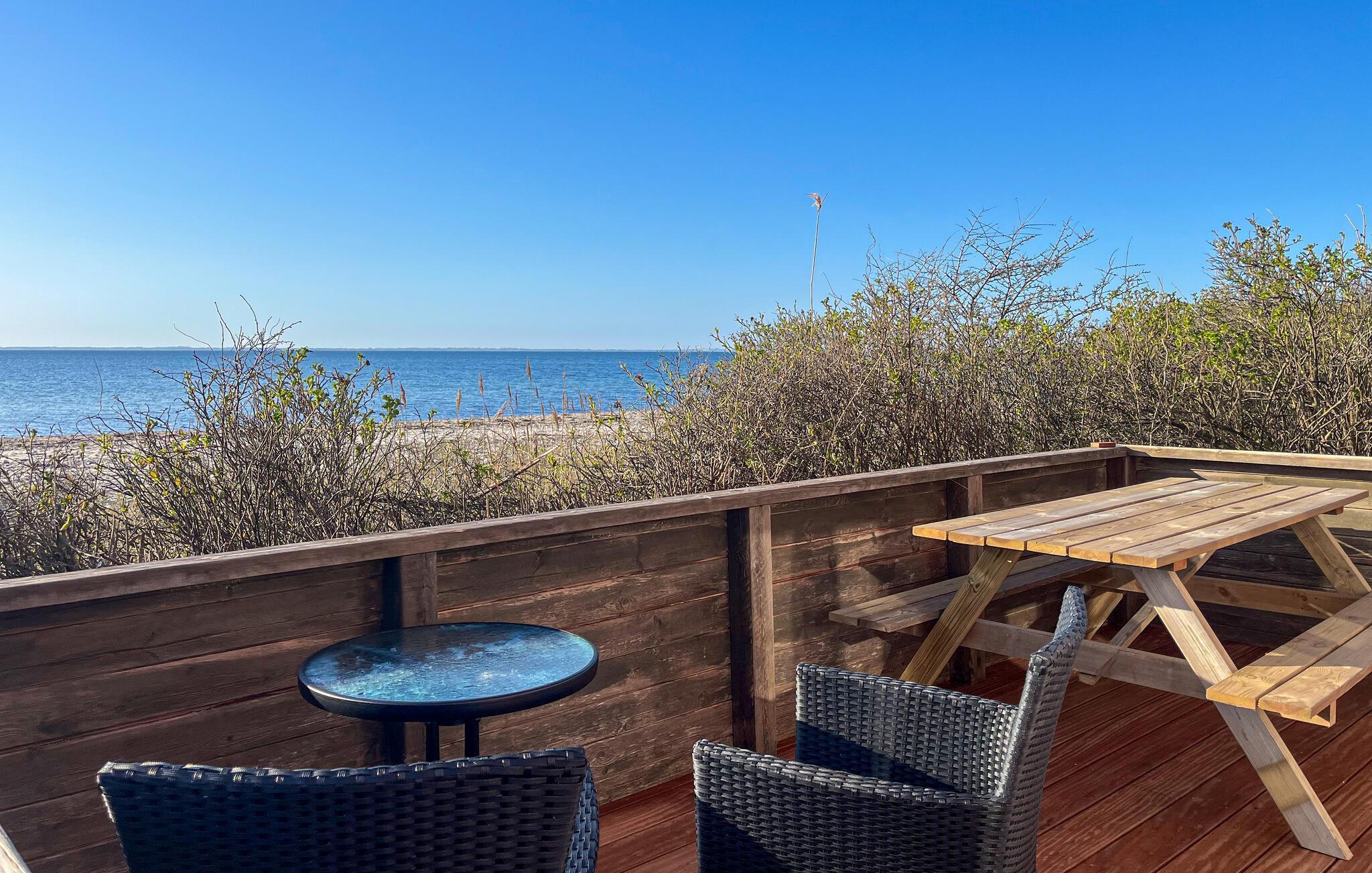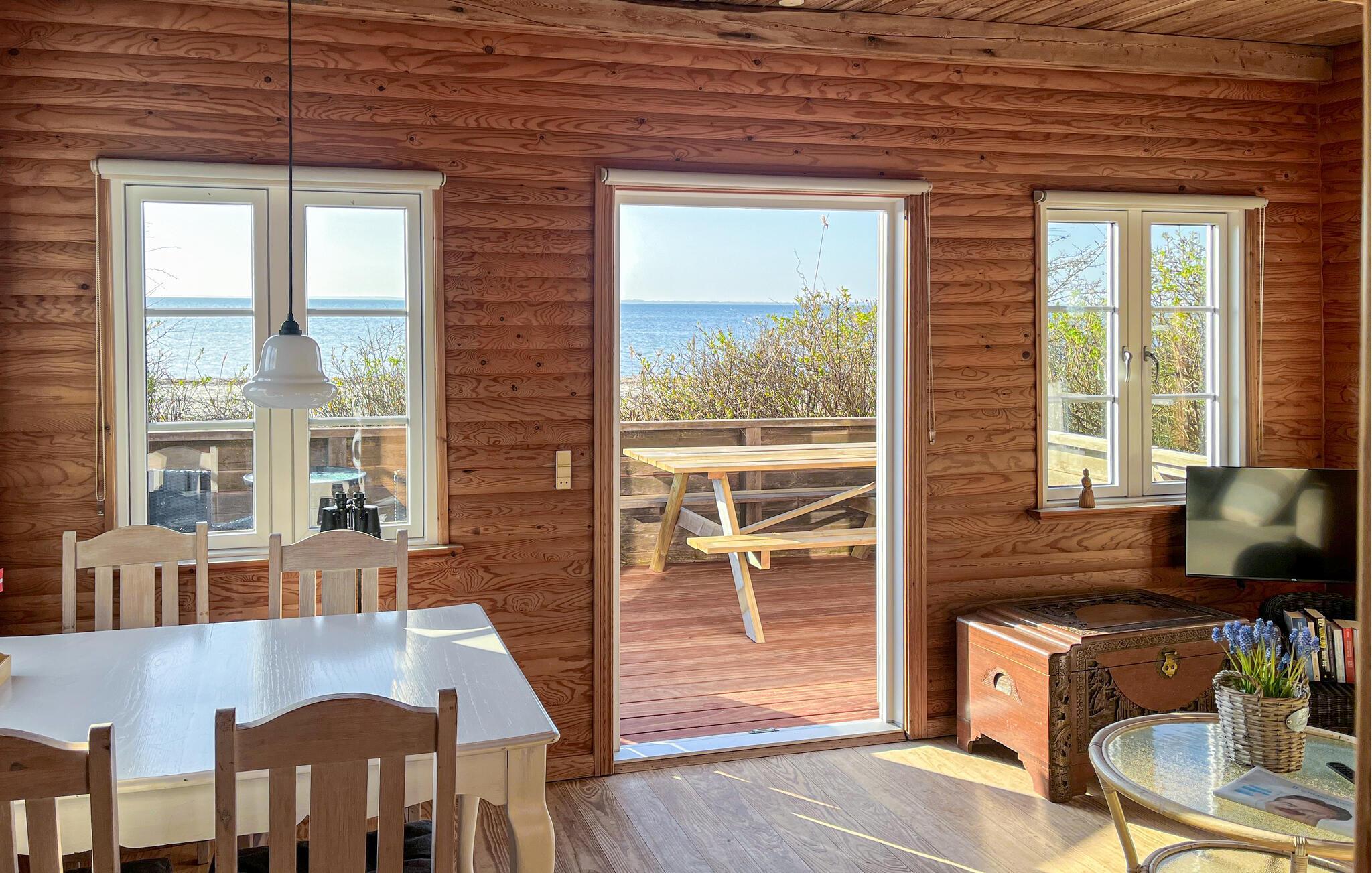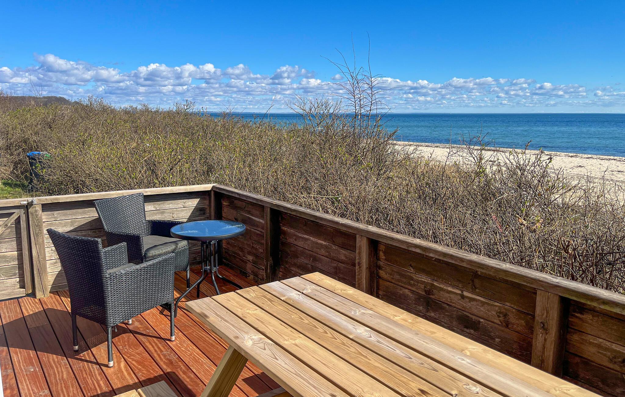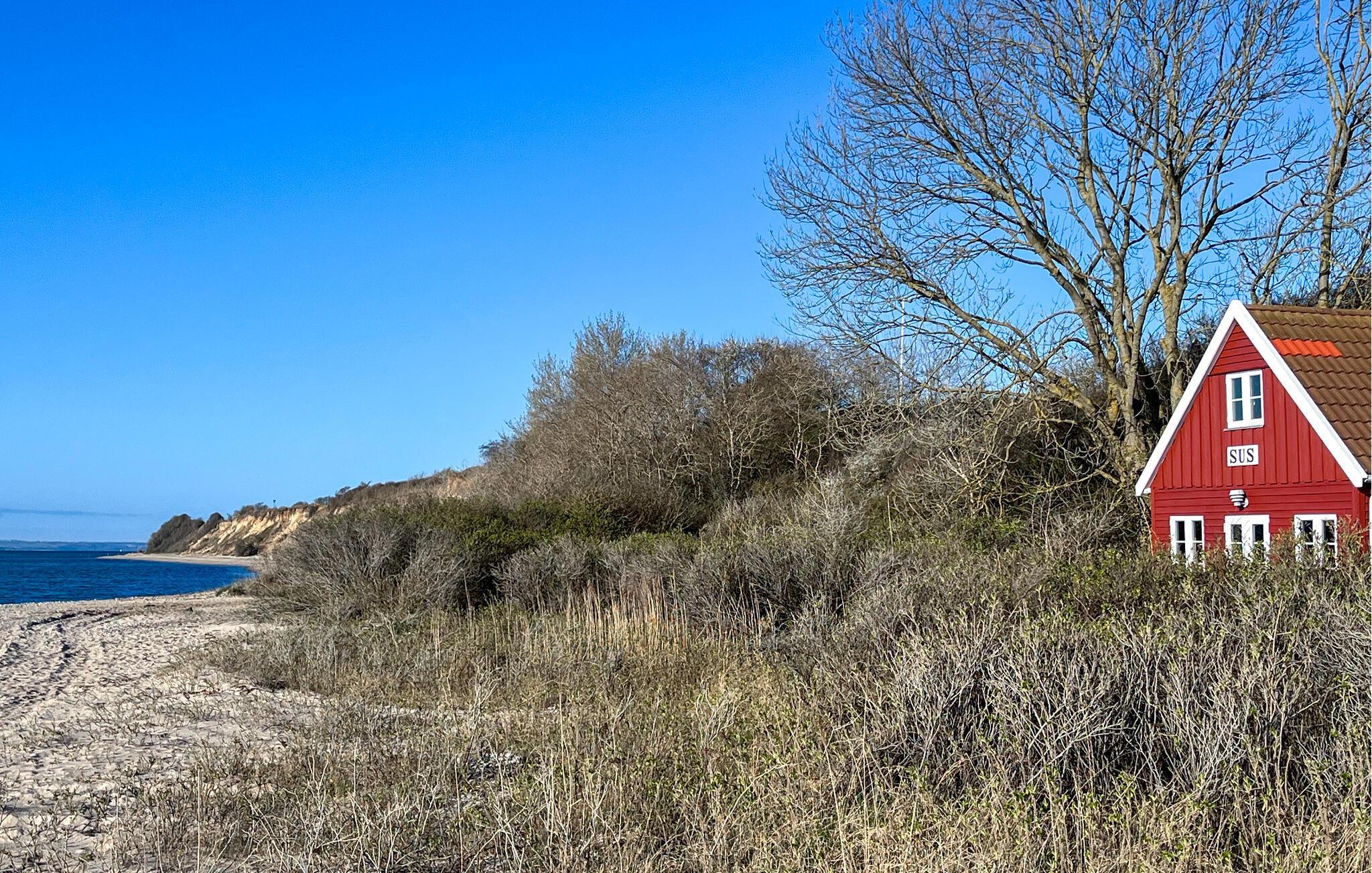 Velkommen til Sønderjyllands smukke østkyst og dette helt igennem dejlige hus. Her kan I nyde nogle fredfyldte dage og sætte hverdagslivet på pause. Indvendig er huset holdt i varme træfarver med fine lyse detaljer fra de sprossede vinduer. Sæt jer til rette rundt om spisebordet og giv jer god tid til en kop kaffe, mens I kigger ud på de fantastiske omgivelser. Åbner I døren ud til terrassen, har I det blå panorama lige foran jer, så her får I en flot kulisse til sommerens måltider. Når I vender hjem efter dagens eventyr, kan I sætte jer samme sted med et glas vin og slappe af til lyden af bølgerne.