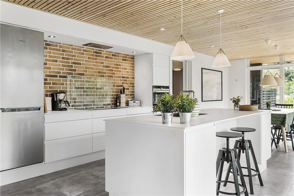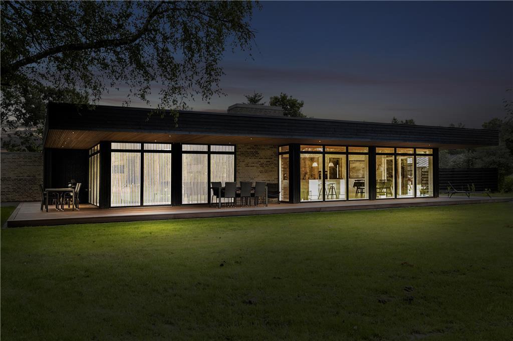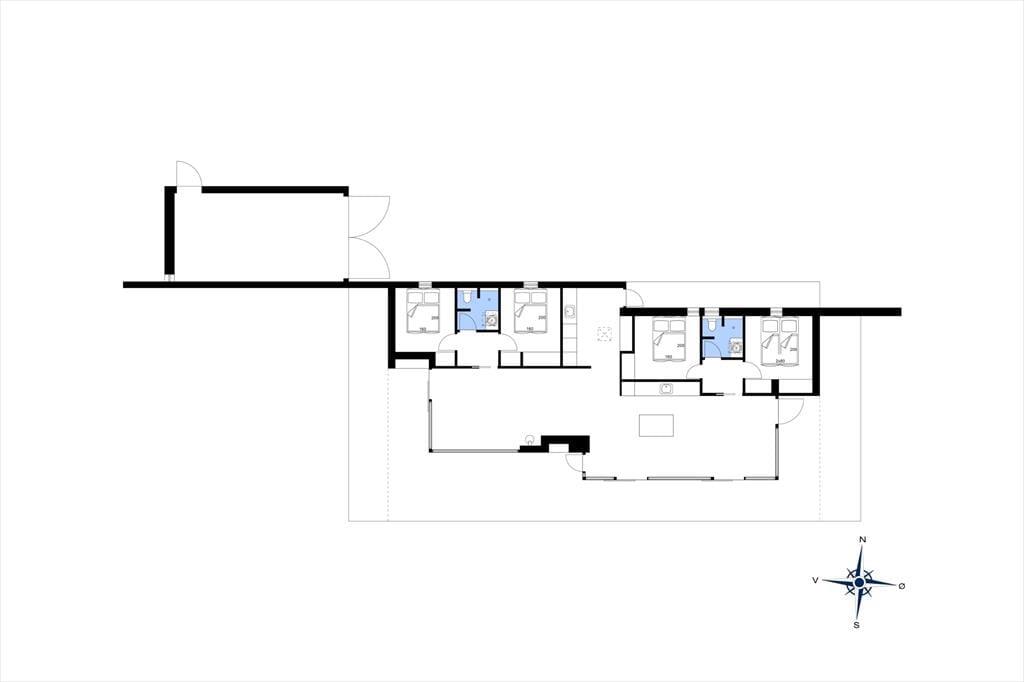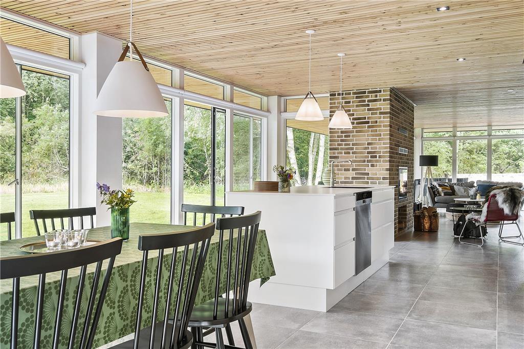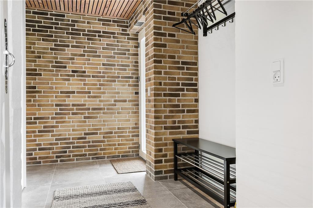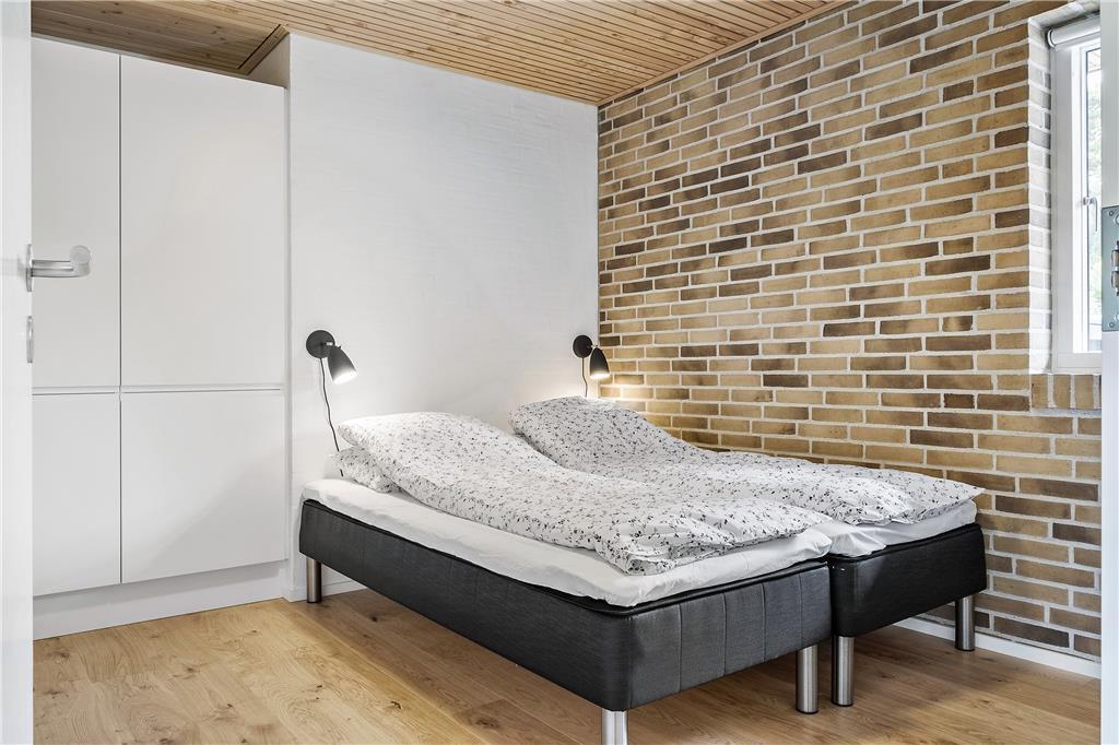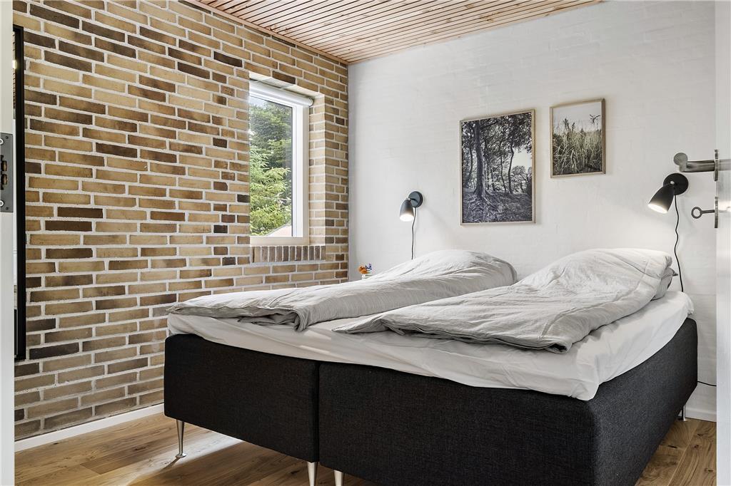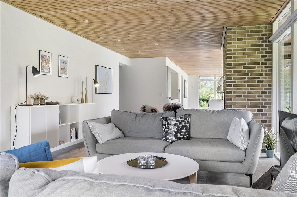 Huset består af to afdelinger med hver to soveværelser og et badeværelse, som bindes sammen af det store køkken-alrum-stue. Mod haven er der store vinduespartier, som lukker lyset og naturen ind i huset. Husets flotte pejs danner et naturligt midtpunkt og indbyder til en kop varm kaffe mens ilden knitrer i takt til sagte musik.