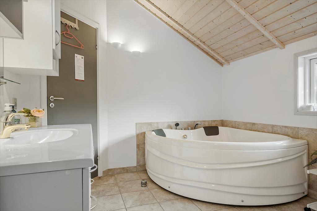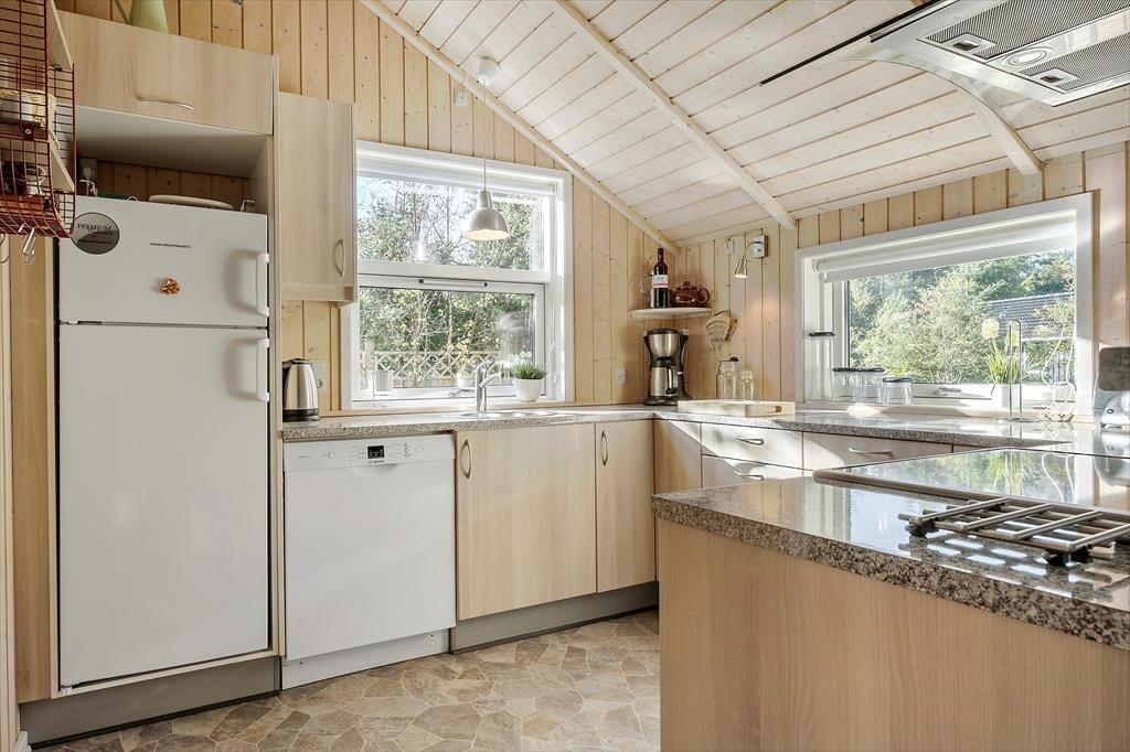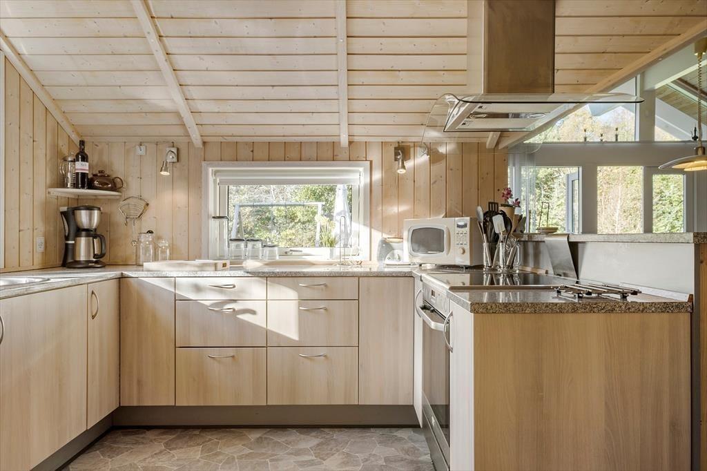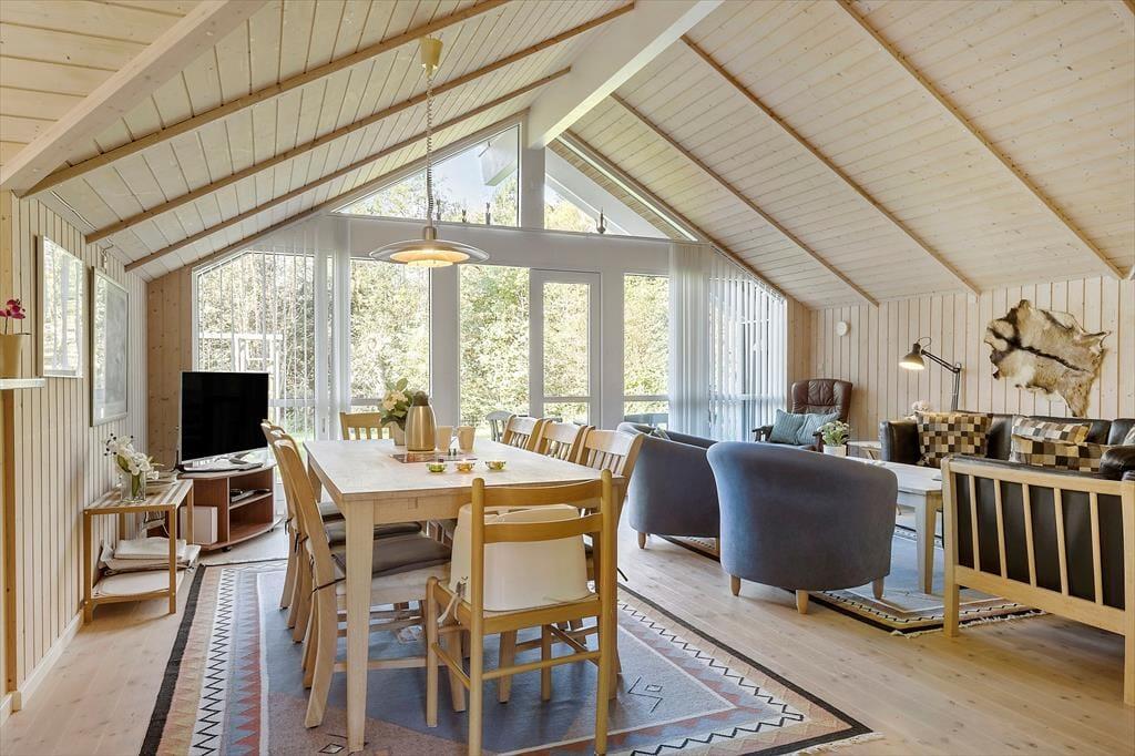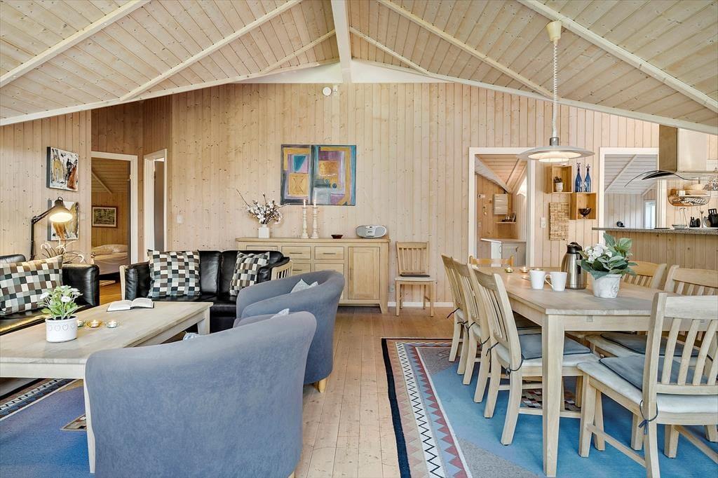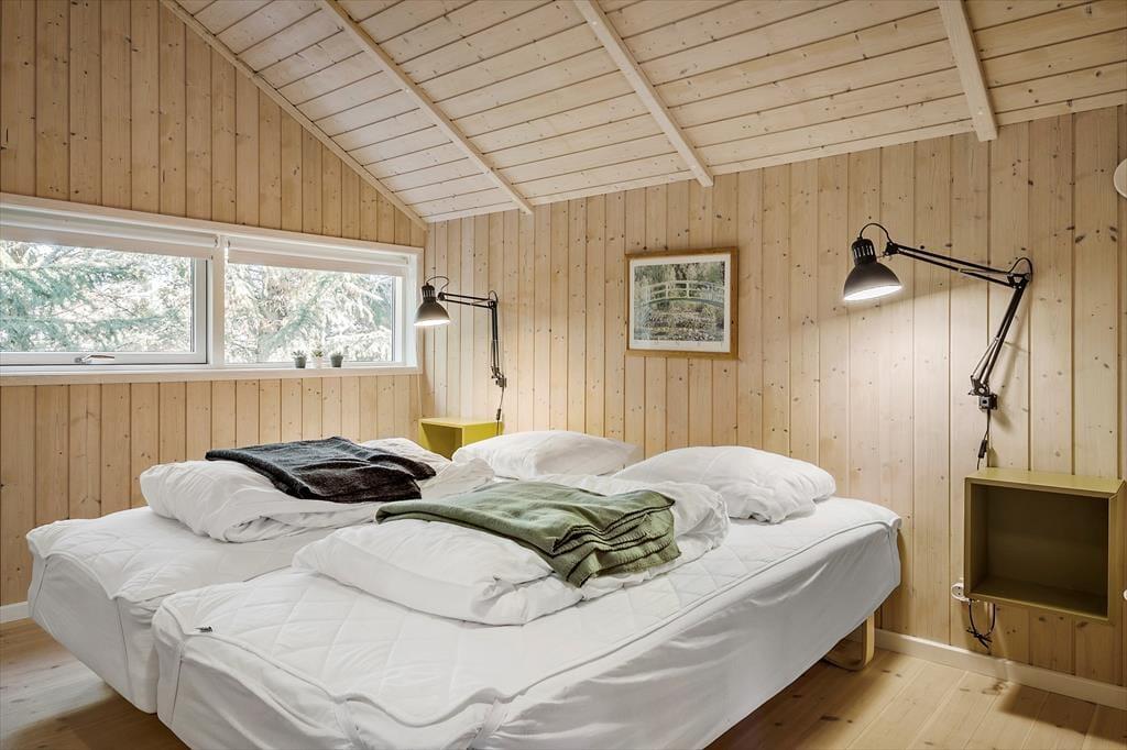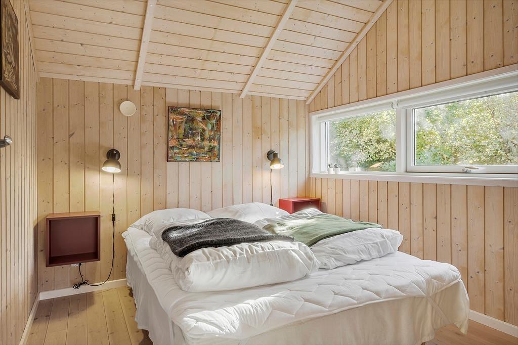 Sommerhusatmosfæren er i top inden døre, hvor I kan brede jer på 97 velindrettede kvadratmeter. Det centrale samlingspunkt i huset er opholdsafdelingen, der består af køkken og stue i åben forbindelse. Her er der loft til kip og store vinduespartier, som bidrager til den lyse og luftige rumfornemmelse, og med komfortable siddemøbler, spisebord, stort fladskærms-tv og en veludstyret køkkenafdeling har I alt, hvad I skal bruge for at hygge jer og nyde ferielivet. En afslapningsstund i spabadet, der står på badeværelset, erogså perfekt, når I vil koble helt af. Som supplement til badeværelset ligger et gæstetoilet ved entréen, og derudover består planløsningen af tre gode soveværelser, der alle er udstyret med bløde dobbeltsenge – og ligesom i resten af huset er der for øvrigt også gulvvarme her. Får I brug for at friske feriegarderoben op, er der vaskemaskine i annekset.