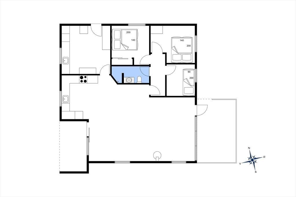 Efter en vellykket renovering i 2015 har sommerhuset et lyst og velfungerende indre, og planløsningen passer fint til syv personer. Rummene er rare at være i, så I kan straks sænke tempoet og gøre klar til en ferie i ro og mag. I stuen er der indfaldslys fra tre verdenshjørner, og særligt gennem det store østvendte vinduesparti er udsigten noget helt særligt, for her kan I skue ud over strandengen, der strækker sig mod Kattegat. Stuen har både brændeovn og varmepumpe, og der er fladskærms-tv med Chromecast, hvis I har lyst til en rolig stund i sofaen. Et moderne køkken er integreret i rummet, og derudover råder I over et brusebadeværelse og fire soveværelser – hvoraf det ene er placeret i husets anneks.