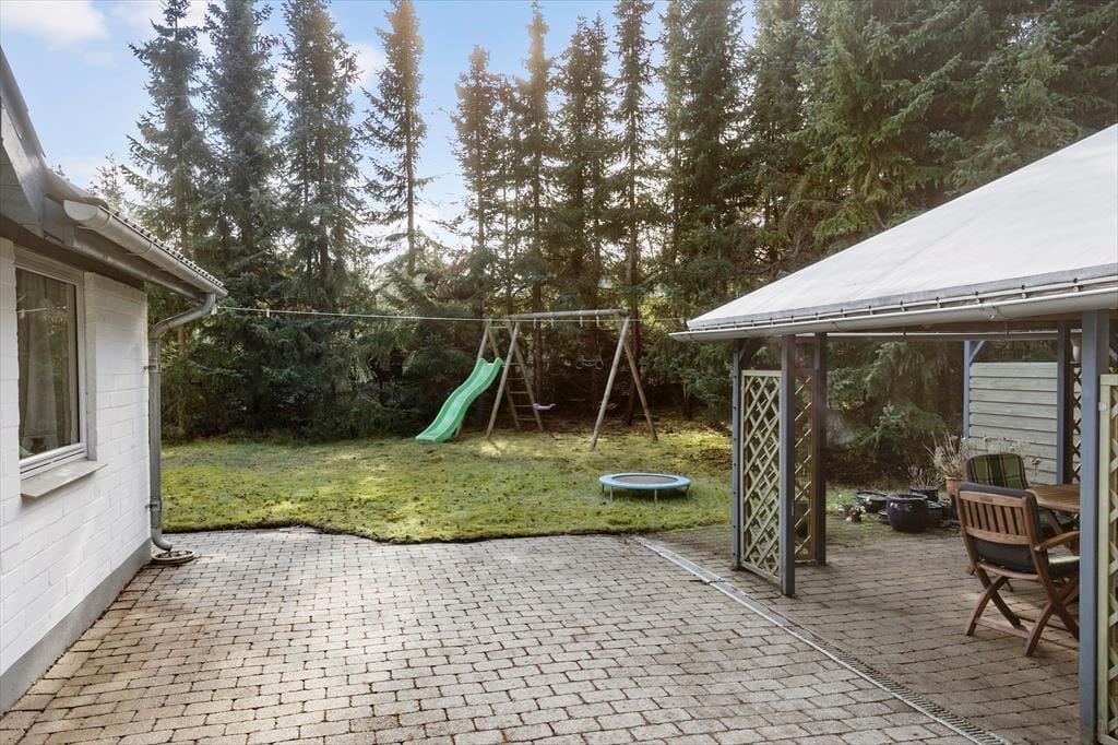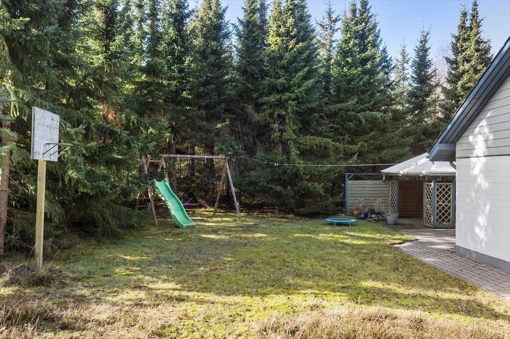 Sommerhusets skønne naturgrund indbyder til både afslapning og leg. Her kan børnene boltre sig i det fri, mens de voksne nyder en kop kaffe i en af de hyggelige havestole. Med flere terrasser kan du altid finde en solrig krog eller en skyggefuld plads, afhængigt af vejret og tidspunktet på dagen. Den overdækkede terrasse skaber en perfekt ramme for hyggelige aftener med familien, hvor I kan grille og nyde den friske luft, selv hvis duggen falder.