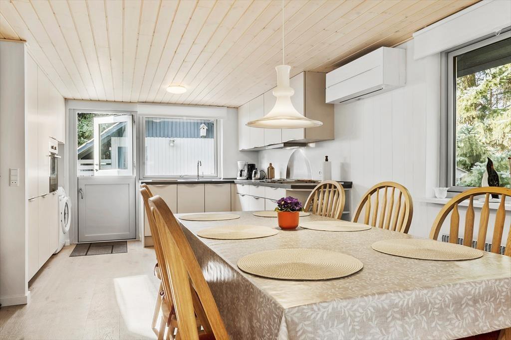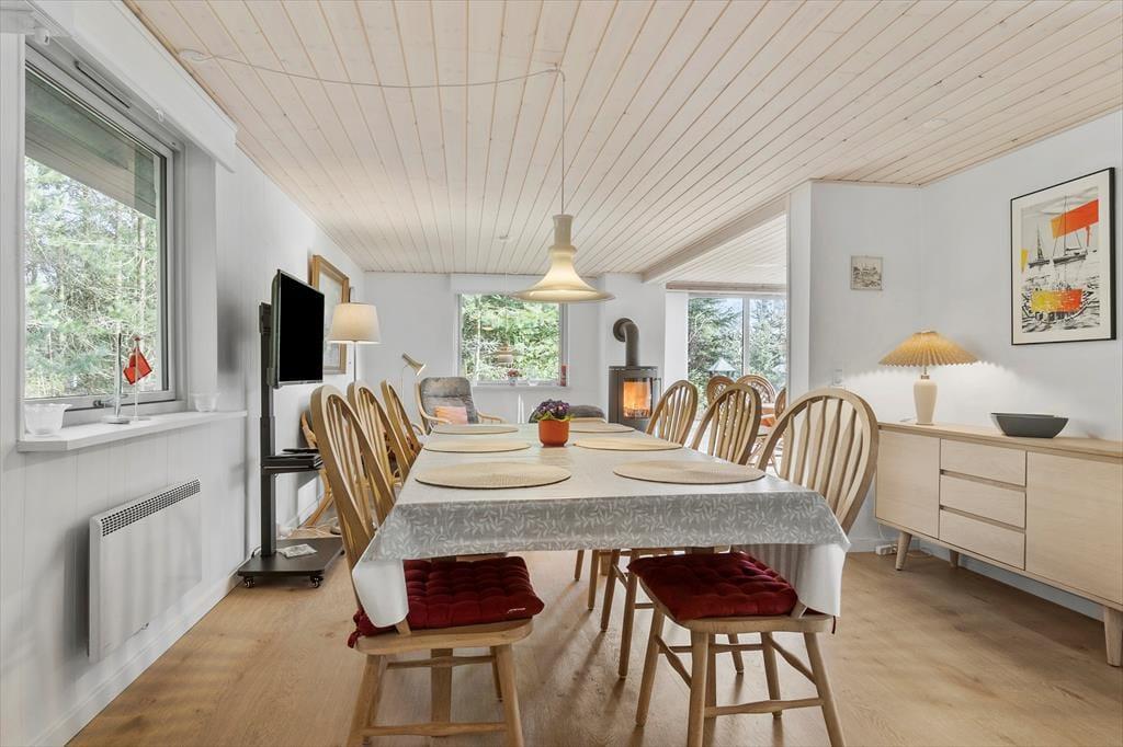 Fra det øjeblik du træder indenfor i sommerhuset, vil du føle dig hjemme i de lyse og hyggelige rammer. Den åbne indretning skaber en indbydende atmosfære, hvor familien kan samles omkring madlavning, brætspil eller en god film på sofaen. Den stemningsfulde brændeovn bidrager til hyggen, særligt på de køligere aftener, hvor flammerne knitrer, og varmen breder sig i rummet. Der er plads til fem personer, så uanset om I er en lille familie eller en vennegruppe, vil der være rig mulighed for at nyde en afslappende ferie her.