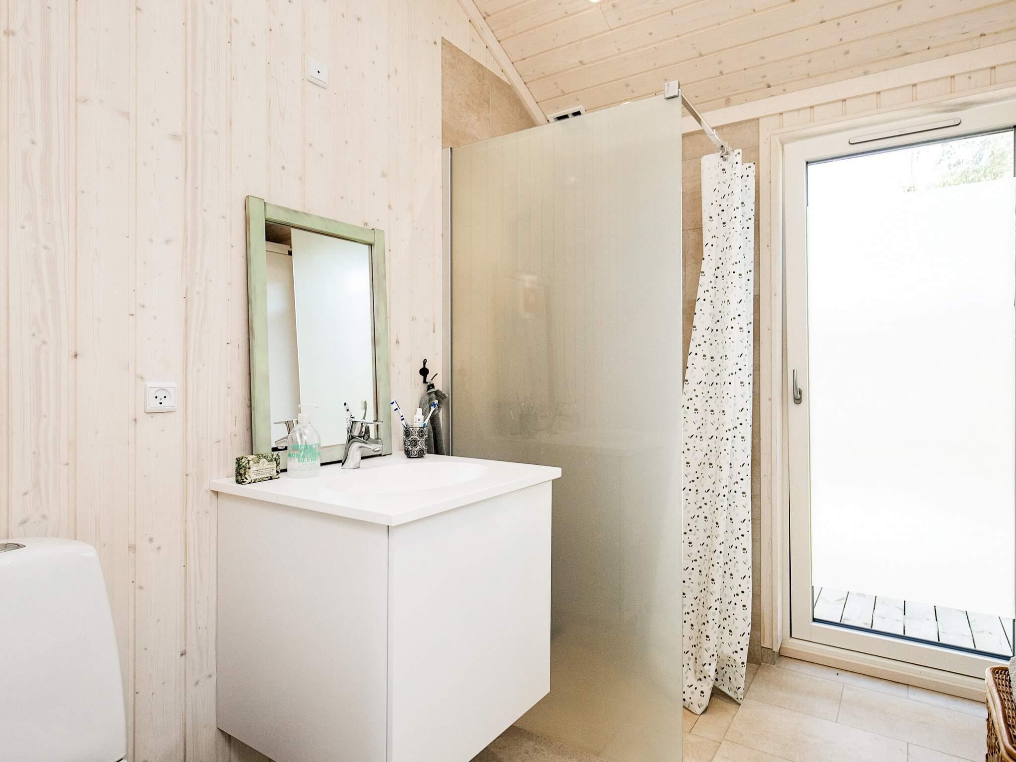 Sommerhuset indeholder entré/gang, hems, badeværelse med vaskemaskine samt udgang til udebruser. Derudover er der stort og rummeligt soveværelse med dobbeltseng samt skabsvæg, værelse med dobbeltseng samt værelse med norsk køjeseng og mindre hems til leg.