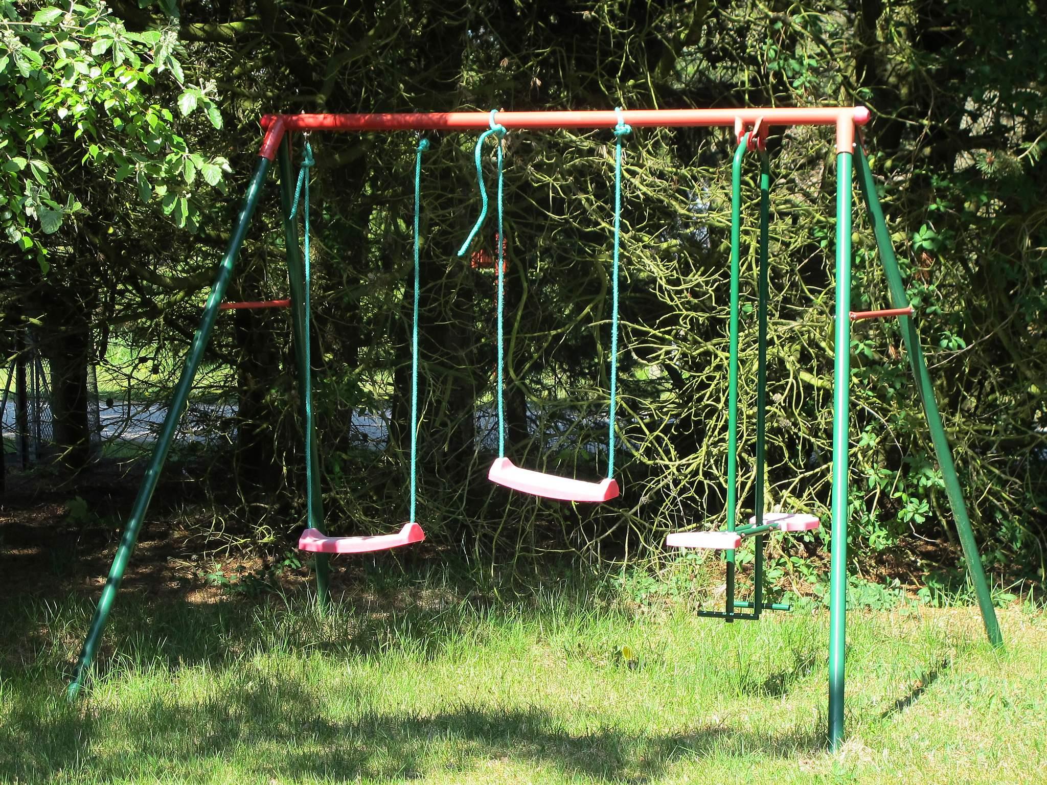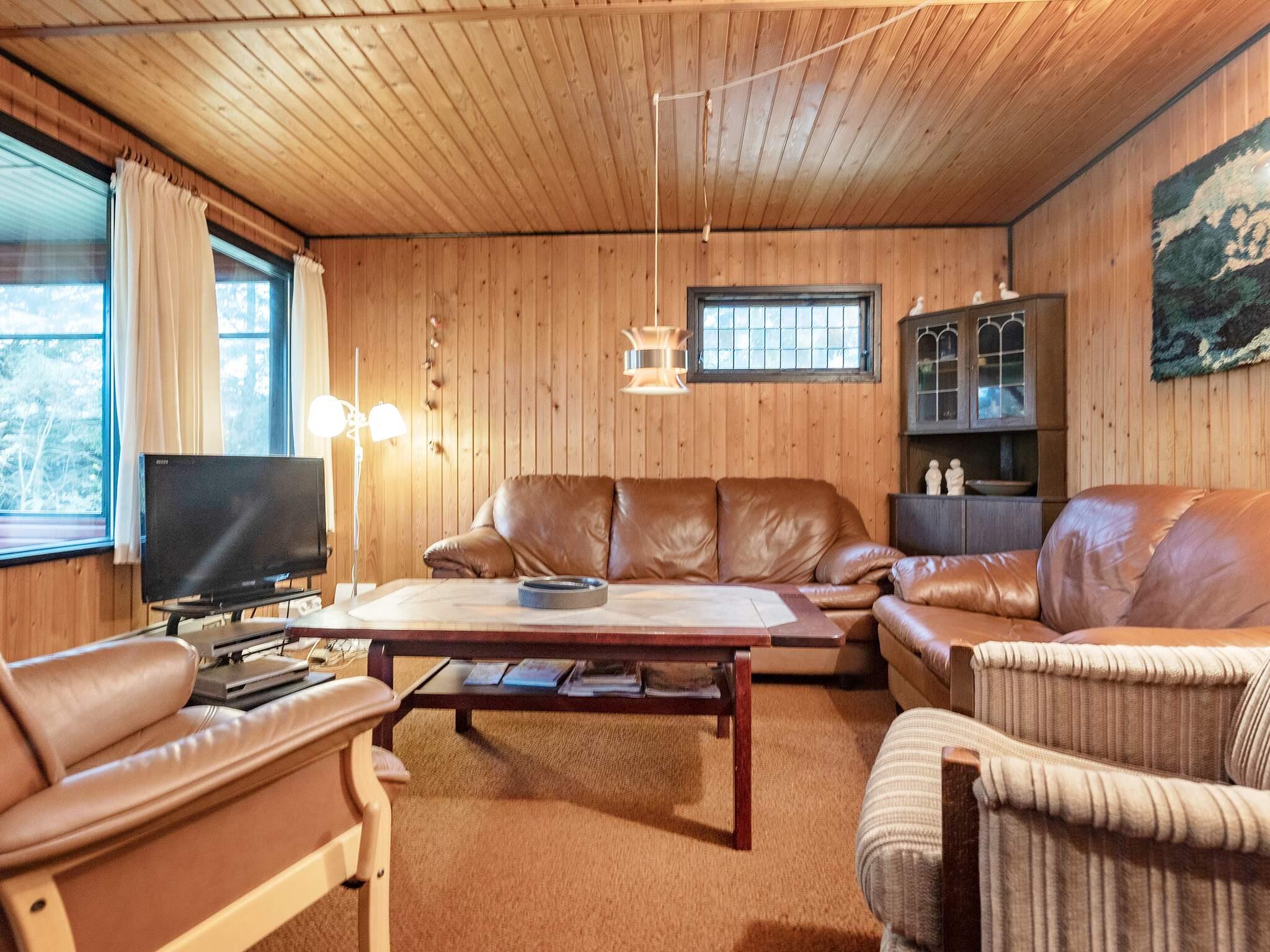Enkelt indrettet sommerhus. Huset ligger på en naturgrund med træer og buske. Overdækket terrasse. Der er legeredskaber.