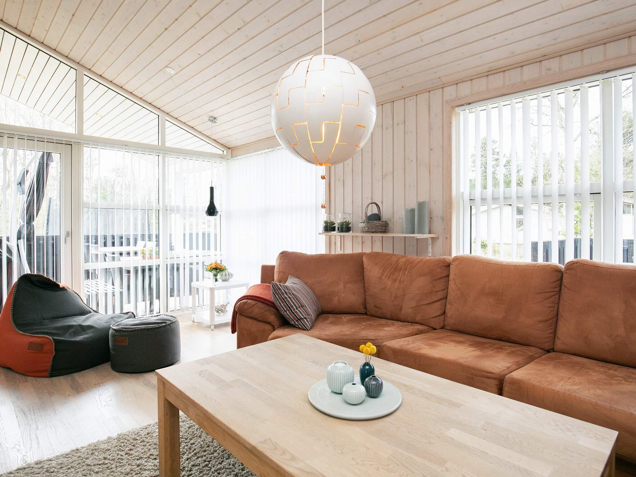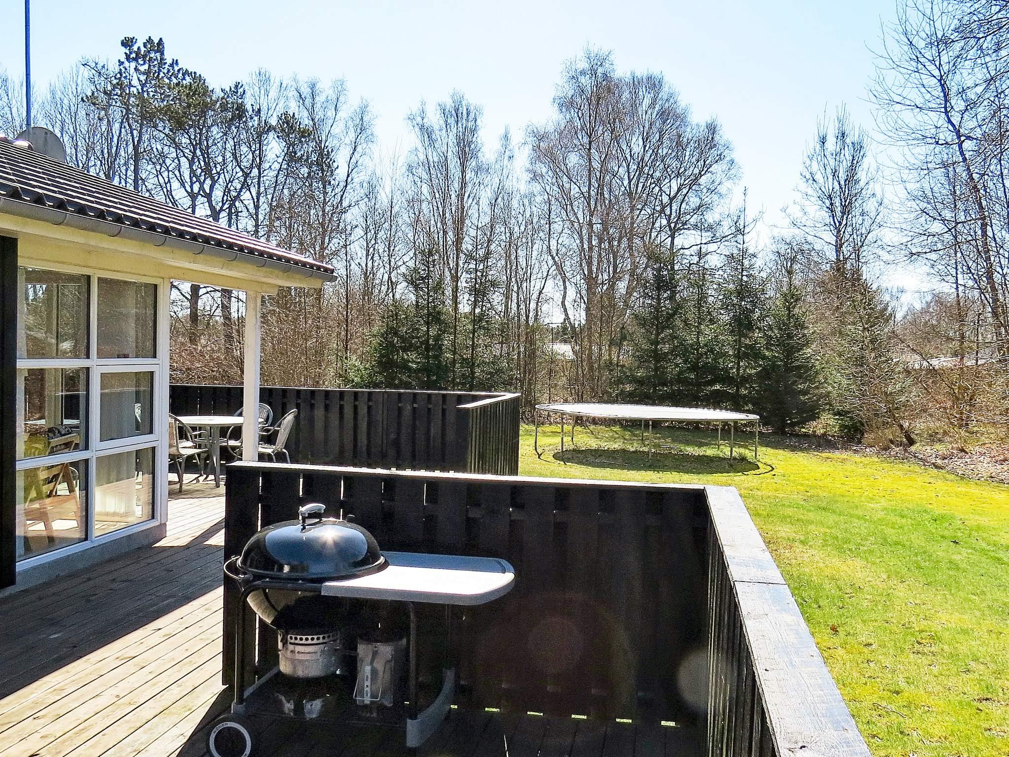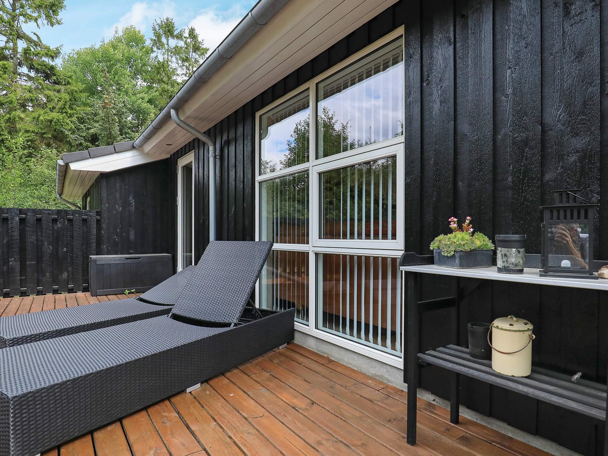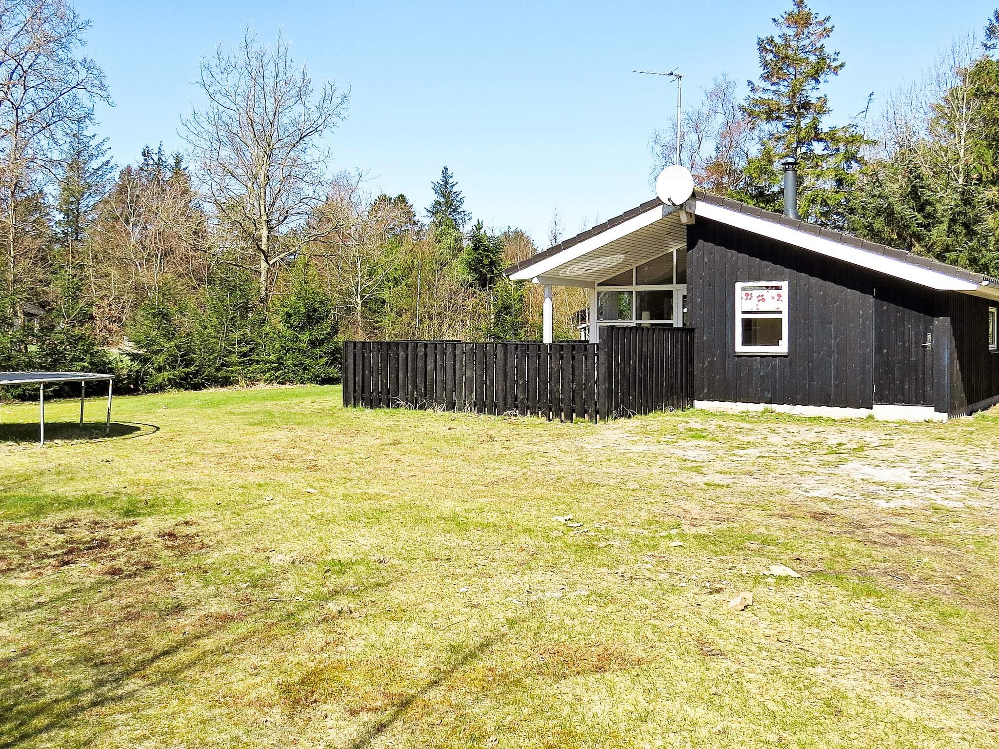 Sommerhus beliggende på grund med græsplæne for enden af blind vej. Huset fremstår lyst med klinkegulv i køkken/alrum. Der er komfur med keramiske kogeplader. I resten af huset er der hvidolierede askegulve. 2 badeværelser, begge med brus og toilet og det ene med spabad og sauna. Efter en gåtur i den omgivende natur er det herligt at kunne lade sig forkæle i spabadet eller i den varme sauna. Huset er veludstyret og indrettet med moderne møbler. Mulighed for at se DR1, DR2 og tv2. 7 m² overdækket terrasse. Til børnene er der sandkasse og trampolin (brug af denne sker på lejers eget ansvar/forsikring).