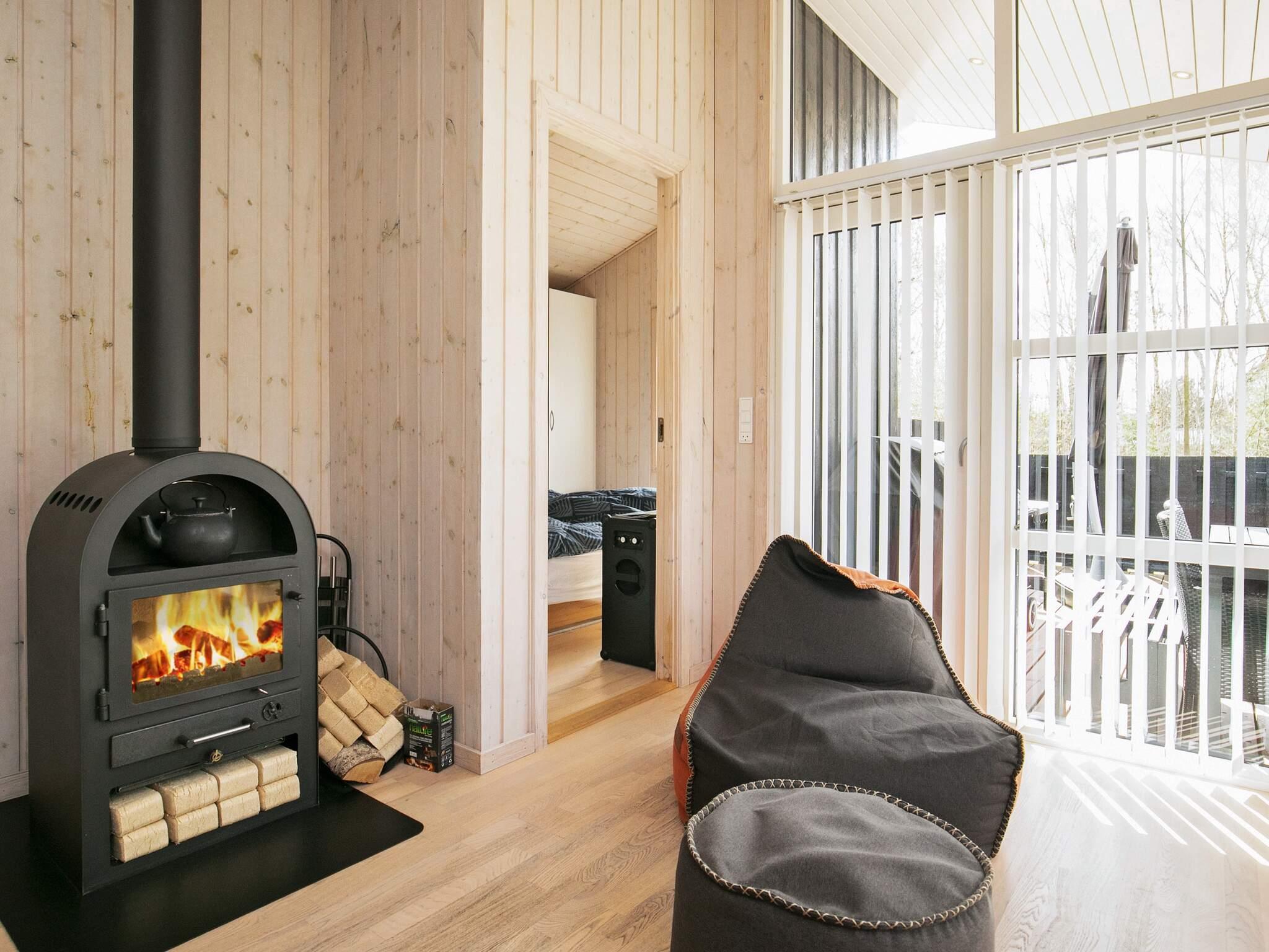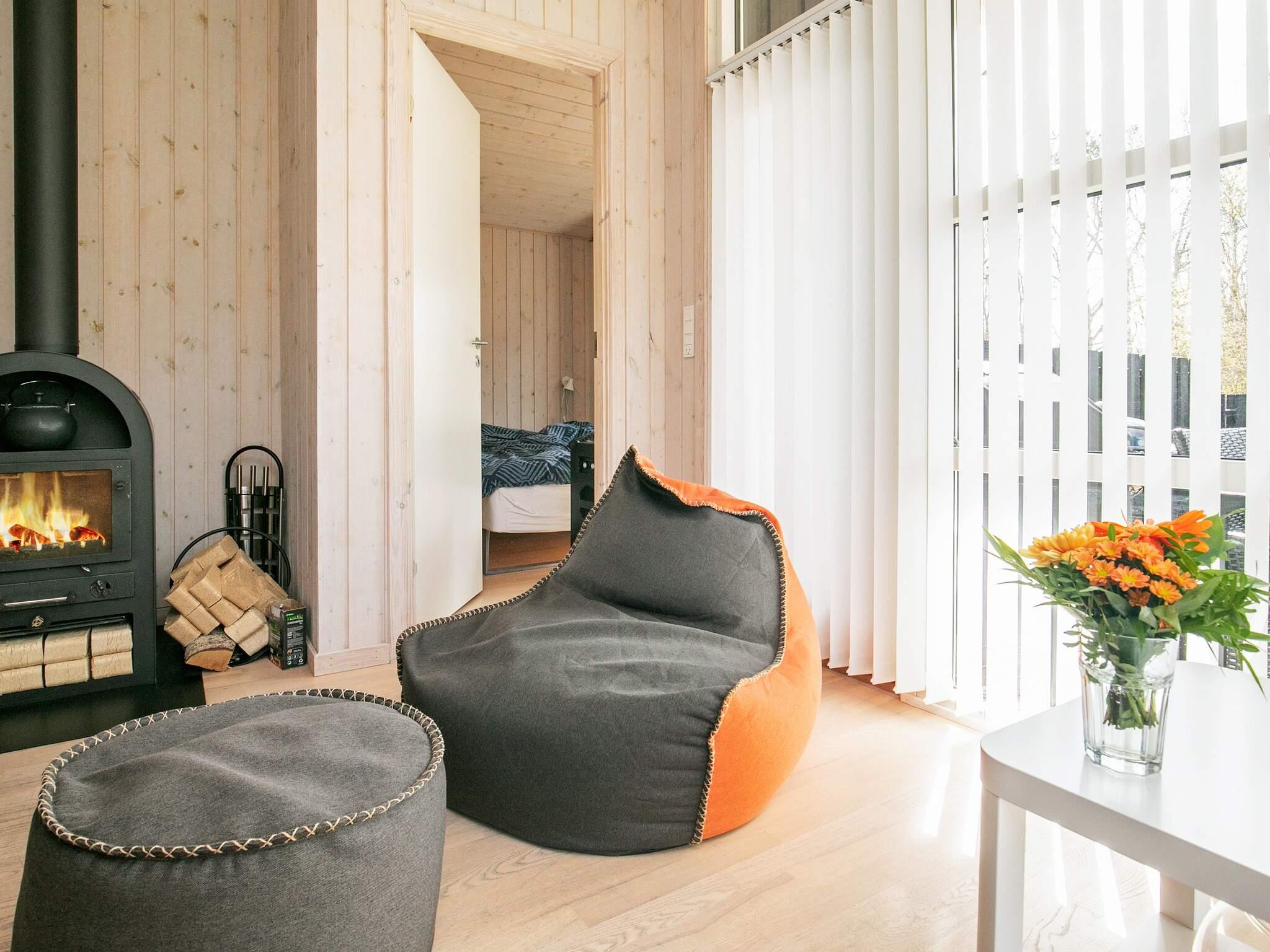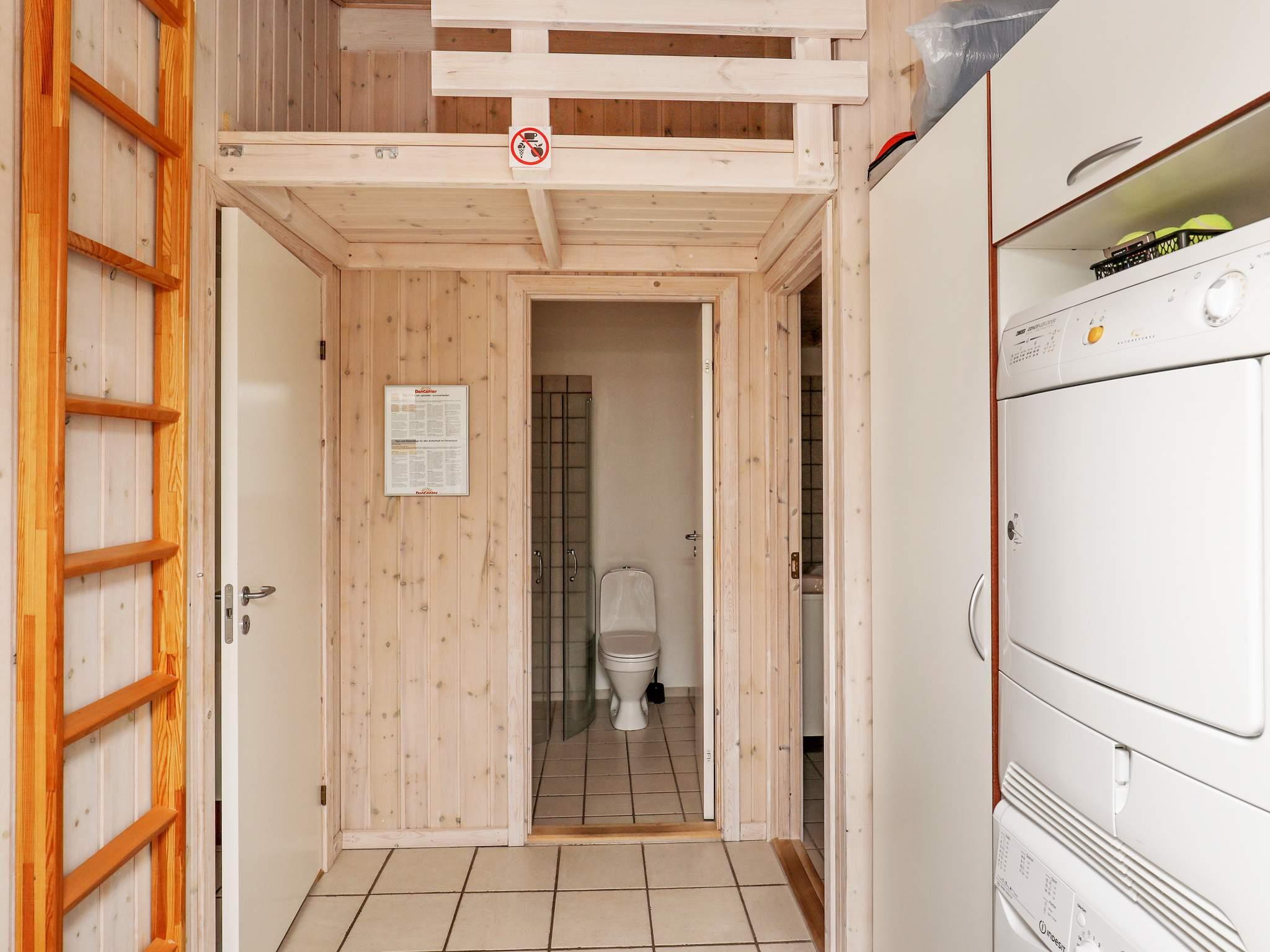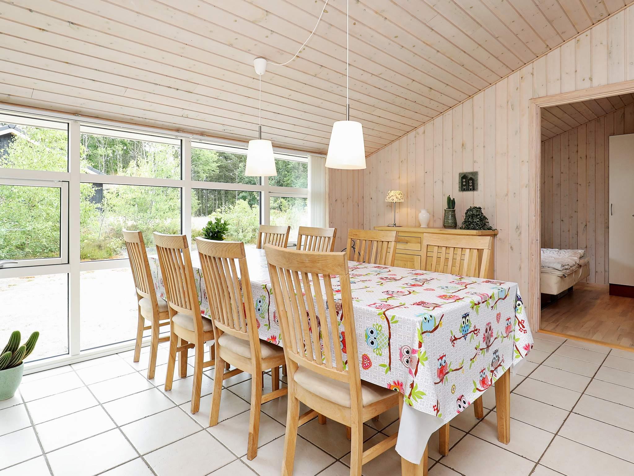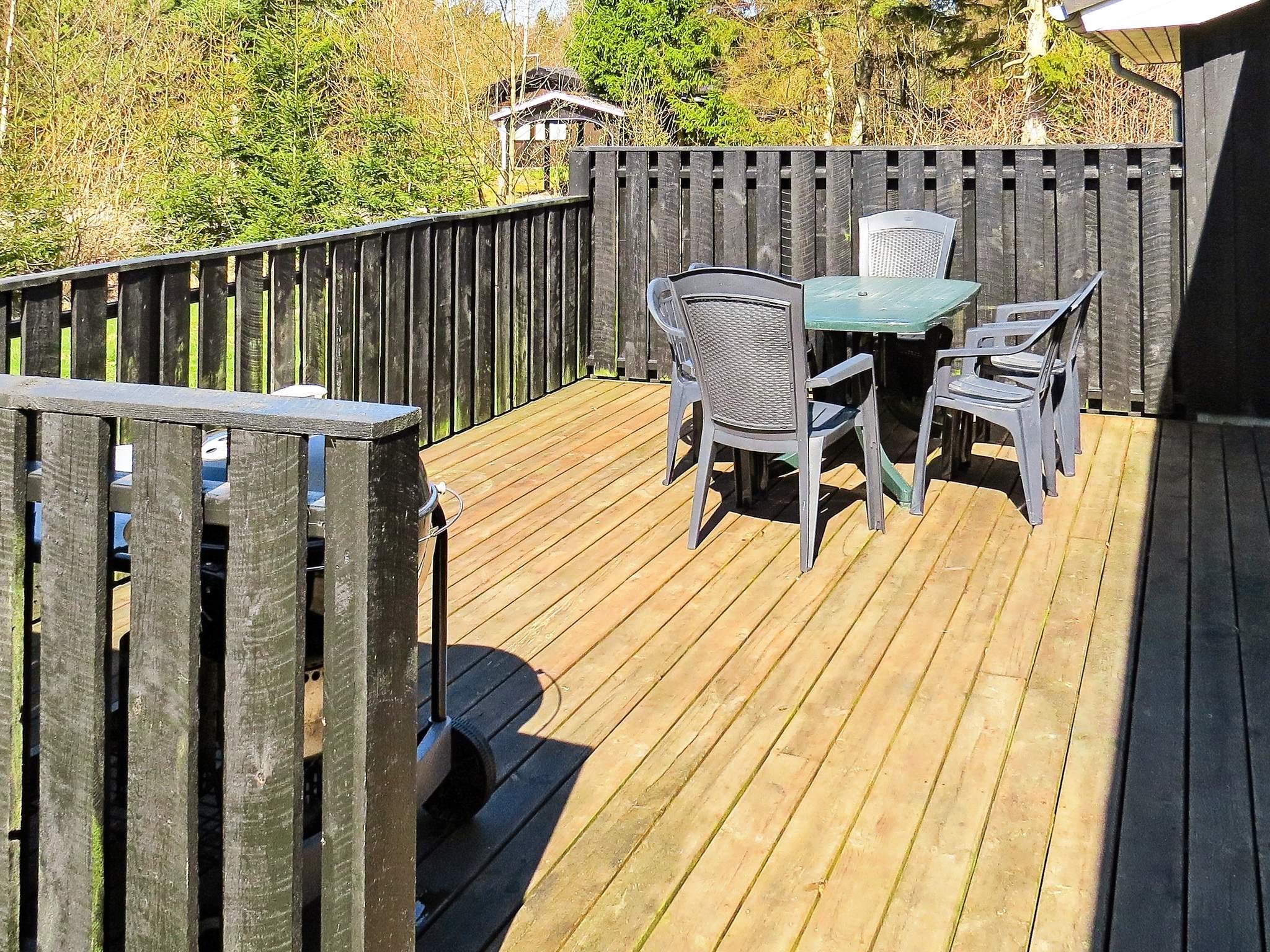 Sommerhus beliggende på grund med græsplæne for enden af blind vej. Huset fremstår lyst med klinkegulv i køkken/alrum. Der er komfur med keramiske kogeplader. I resten af huset er der hvidolierede askegulve. 2 badeværelser, begge med brus og toilet og det ene med spabad og sauna. Efter en gåtur i den omgivende natur er det herligt at kunne lade sig forkæle i spabadet eller i den varme sauna. Huset er veludstyret og indrettet med moderne møbler. Mulighed for at se DR1, DR2 og tv2. 7 m² overdækket terrasse. Til børnene er der sandkasse og trampolin (brug af denne sker på lejers eget ansvar/forsikring).