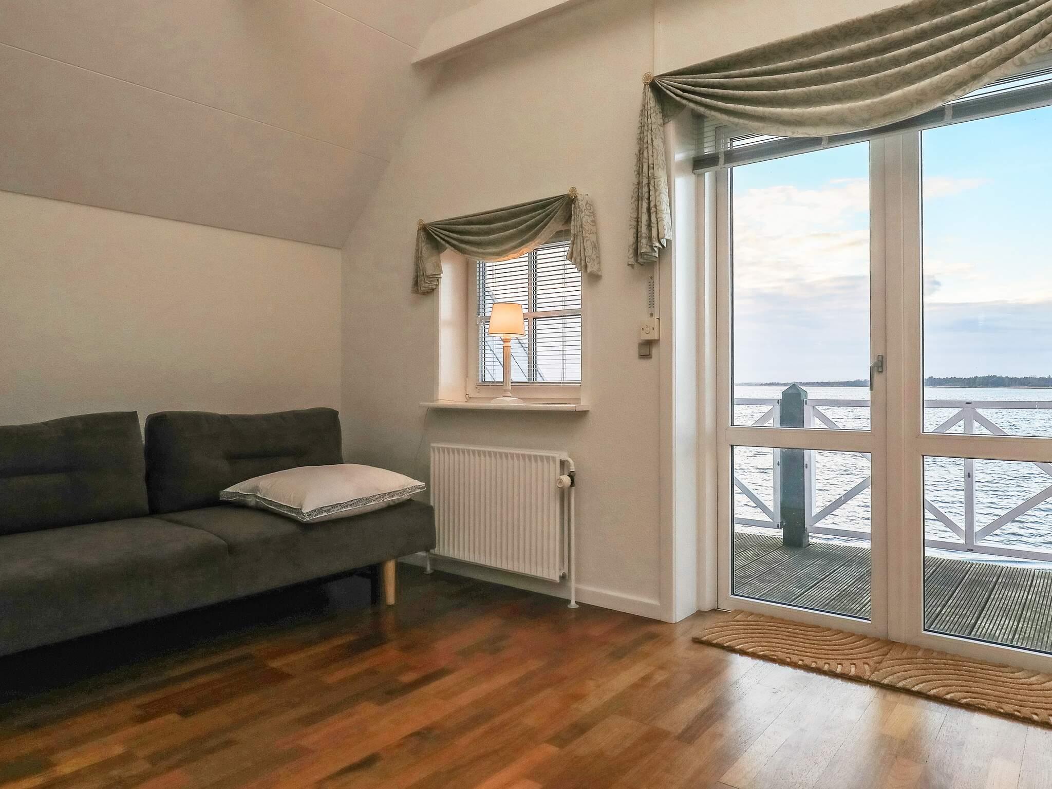 På første sal er der desuden badeværelse med bruser, værelse med dobbeltseng, samt opholdsstue med mulighed for dobbelt sovesofa. Fra stuerne kan du følge livets travlhed på Limfjorden, herunder færgen, der sejler mellem Hals og Egense. Altanen byder på panoramaudsigt over vandet, og du bør ikke gå glip af den smukke solnedgang over Limfjorden.