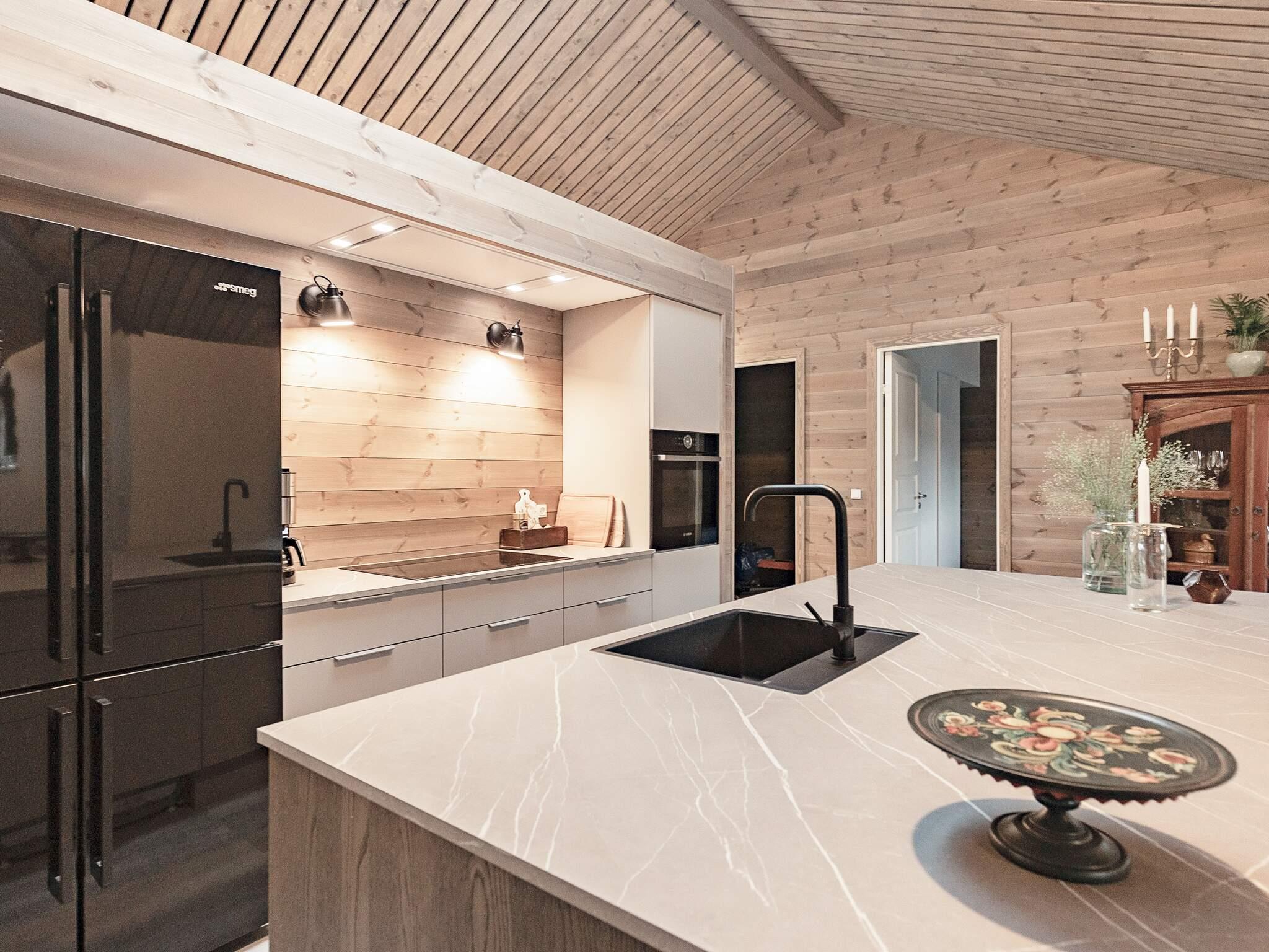 Køkken: El-komfur, køle-frys, emhætte, kaffemaskine, opvaskemask.